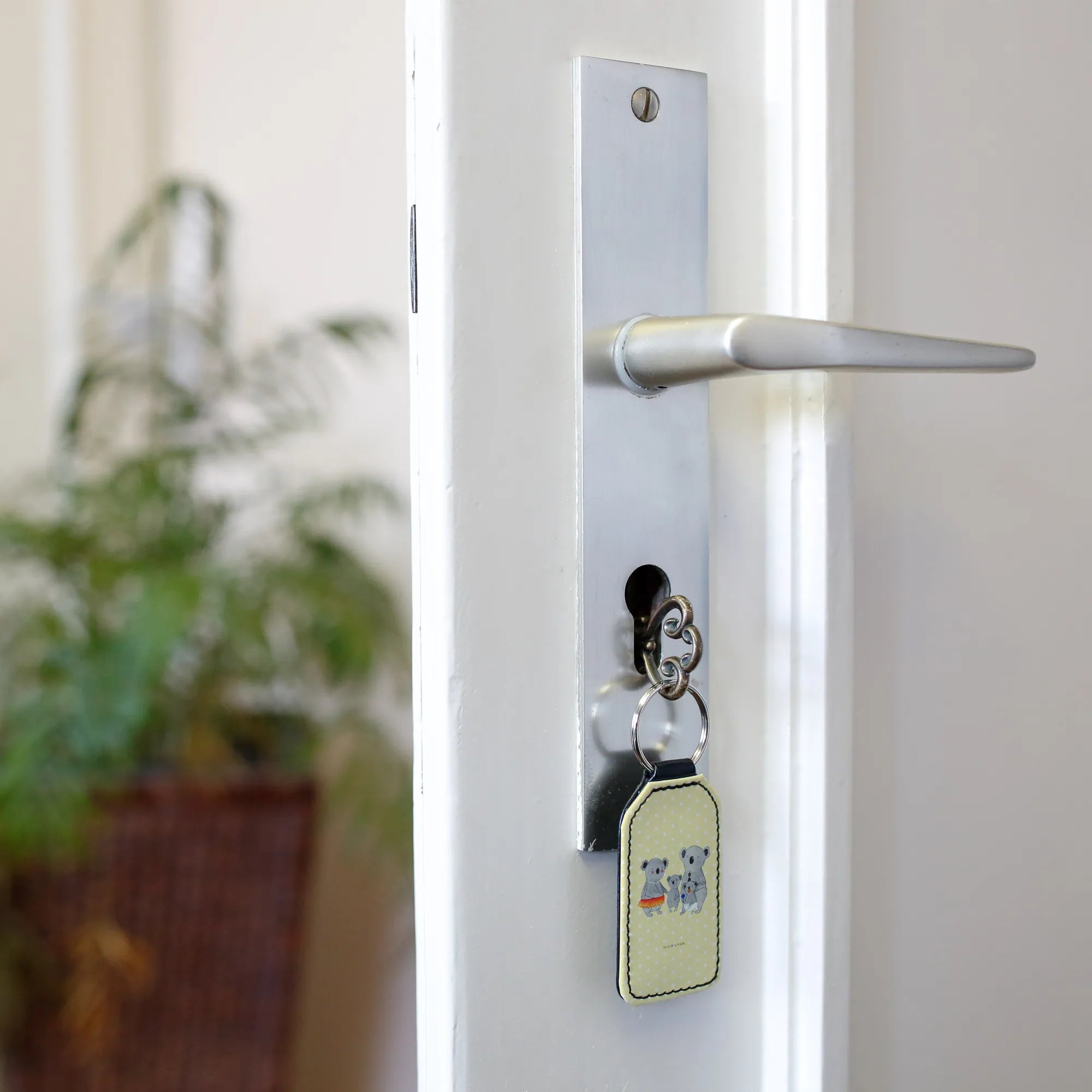 Elevate your daily routine with the enchanting Rectangular Key Ring from Mr. & Mrs. Panda! Sized at 70 mm by 40 mm (3 inch x 2 inch), this classy accessory is made out of luxurious synthetic leather and designed with adorable illustrations and motivational sayings that embody happiness. It’s more than just a handy key holder; it's a small token of good luck to brighten your everyday life. Perfect for keys or as a little charm for your handbag, this key ring is a lovely gift option for friends and family or as a cheerful souvenir of special moments. Gift-wrapped beautifully, it adds an extra touch of thoughtfulness. Keep your keys organized and styled with this delightful accessory that truly makes every key special!
