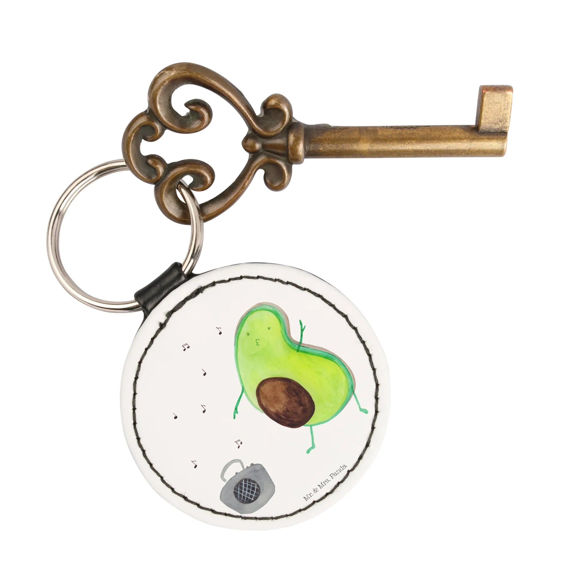 Looking for a delightful and unique gift that embodies joy and positivity? The Round Key Ring featuring our charming design of a dancing avocado is just what you need!