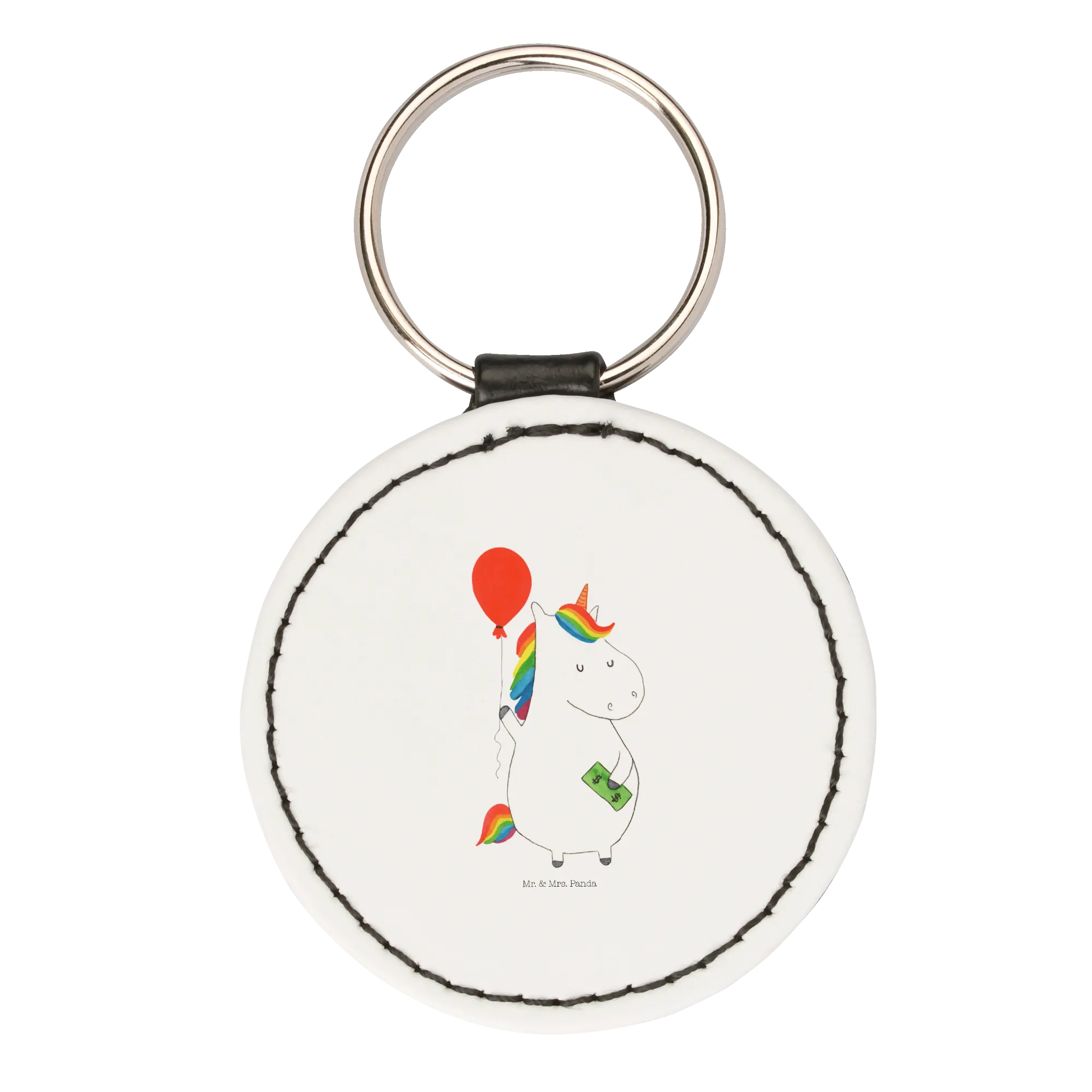 Imagine the joy on your girlfriend's face when she receives this cute unicorn keychain. Crafted from premium artificial leather, the key ring is durable yet soft to the touch, ensuring it lasts while sitting pretty on her keychain. It measures a cheerful 2 inches and features a beautifully designed unicorn holding a bunch of money in one hand and a colorful balloon in the other, symbolizing dreams and aspirations. The phrase "Was kostet die Welt? Achja? Dann den Luftballon, bitte." captures the playful essence of life, making it fun and captivating.