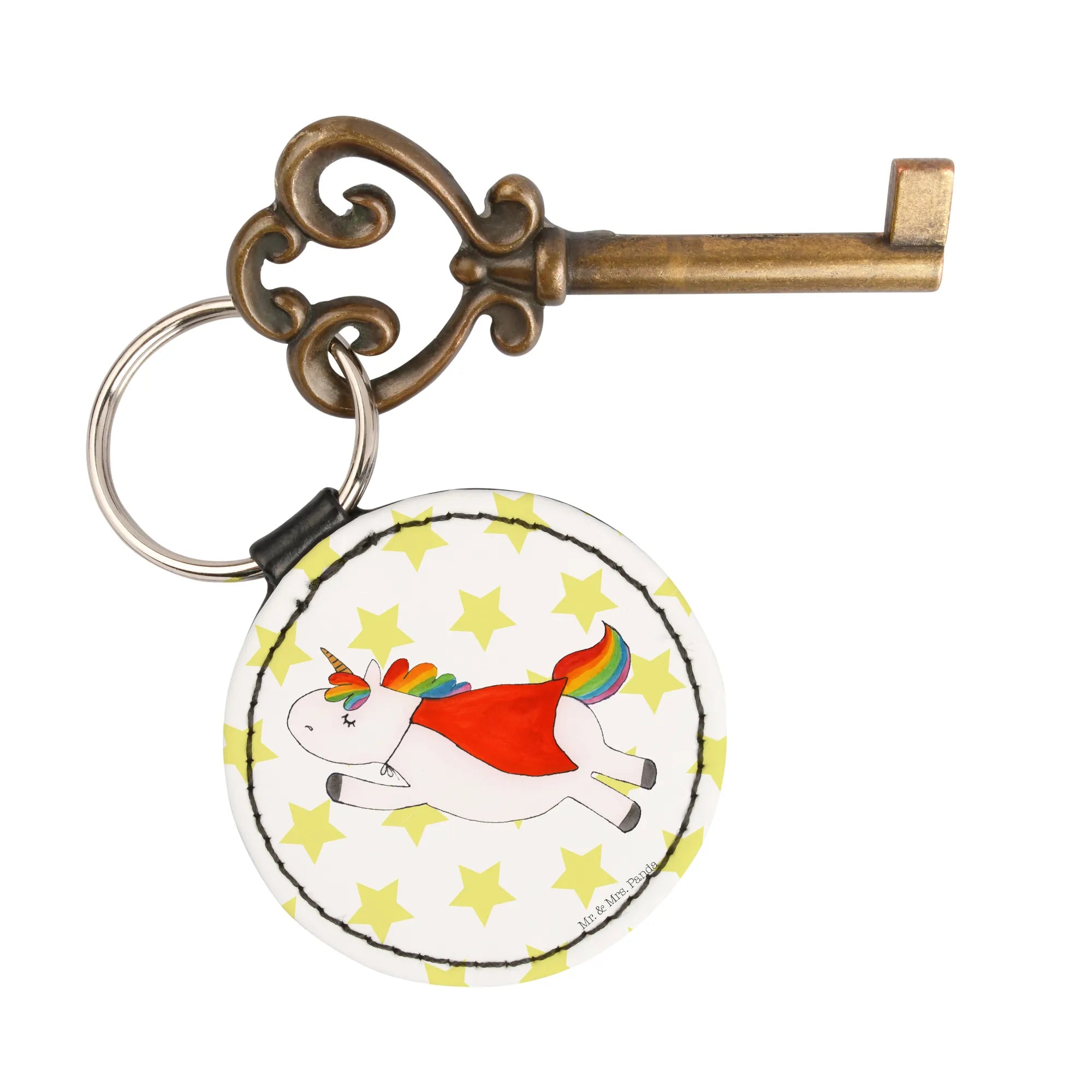 Discover the enchanting world of Mr. & Mrs. Panda with our delightfully charming Round Key Ring featuring a magical Unicorn Superhero design!