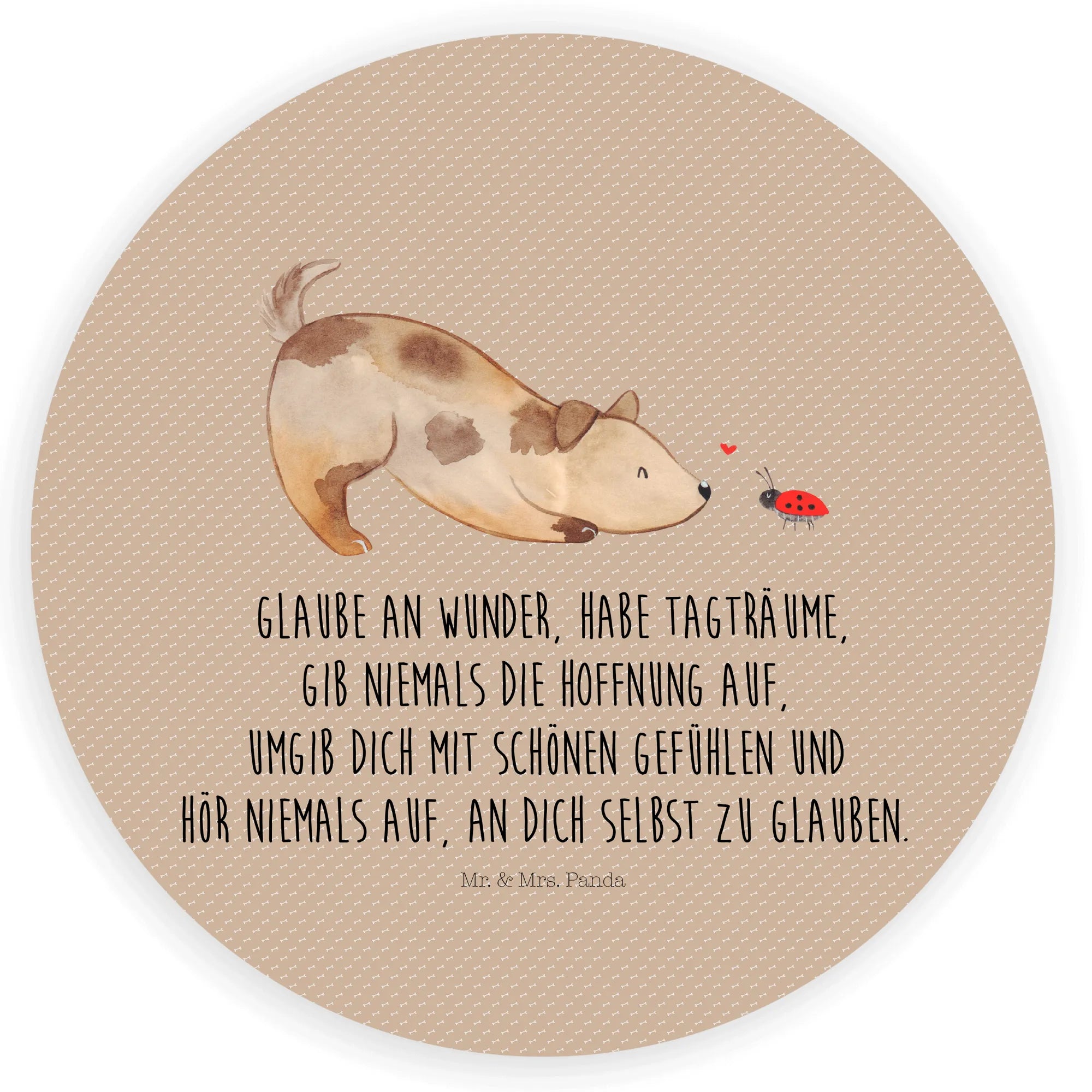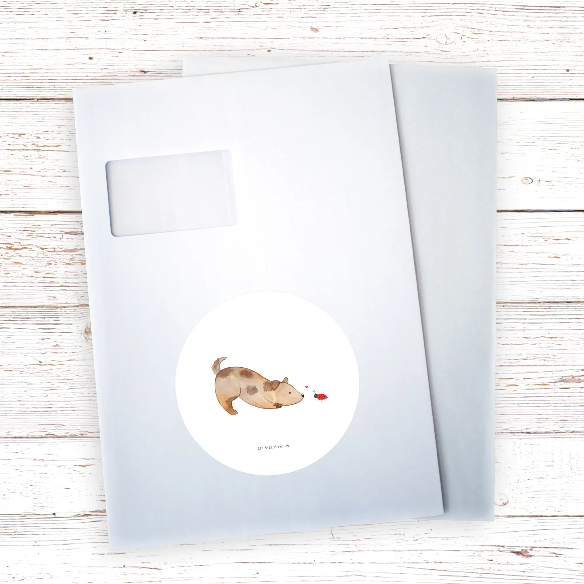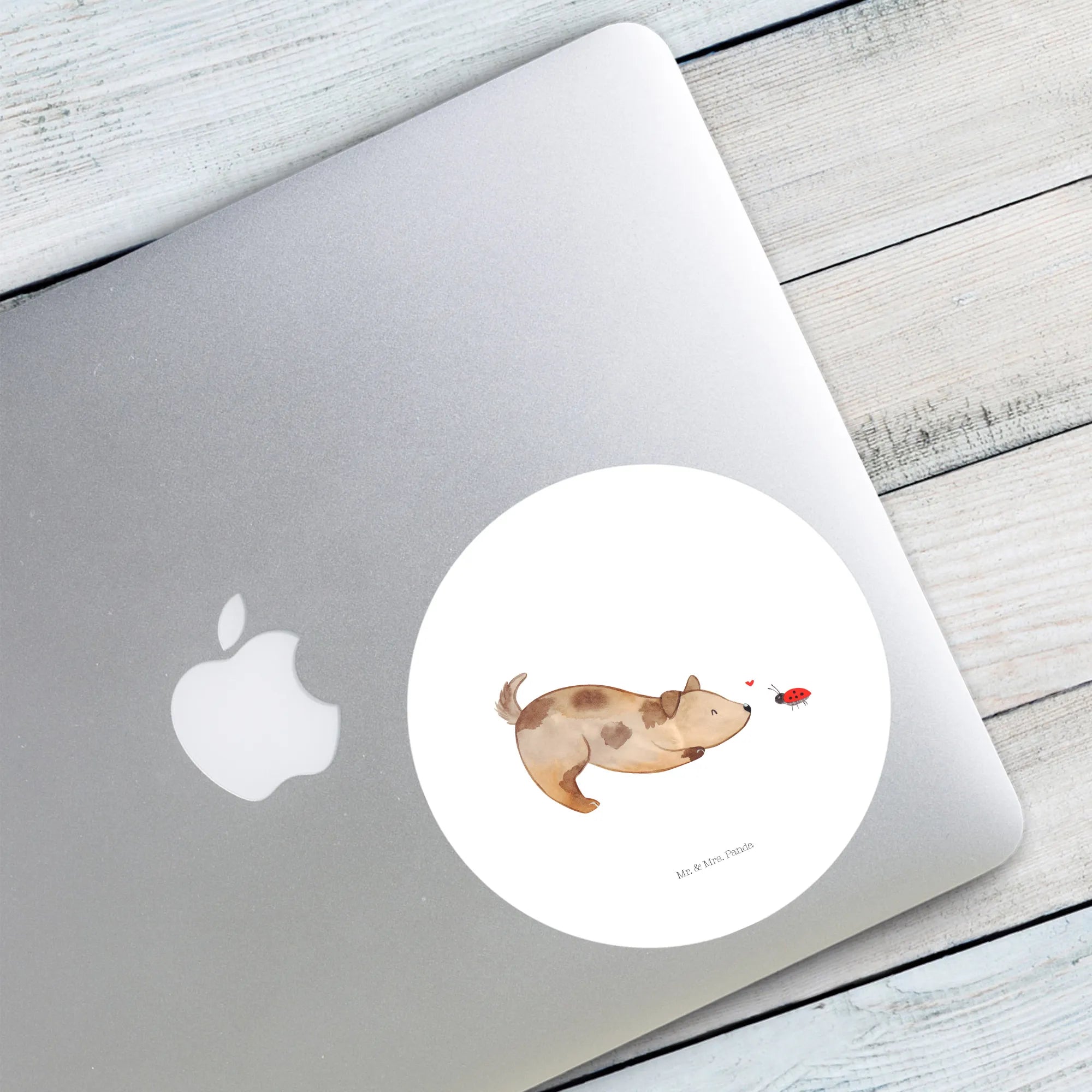 Ein bezaubernder 80mm Runder Aufkleber von Mr. & Mrs. Panda – das Motiv "Hund Marienkäfer" zeigt einen niedlichen Hund, der entzückt vor einem kleinen Marienkäfer sitzt. Von Mrs. Panda liebevoll in Aquarell gezeichnet, bringt dieser runde Sticker Wärme und Freude in Deinen Alltag. 😊🐶🐞