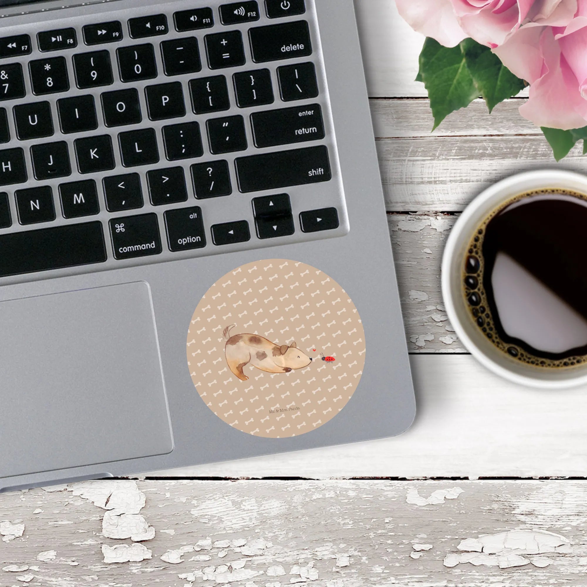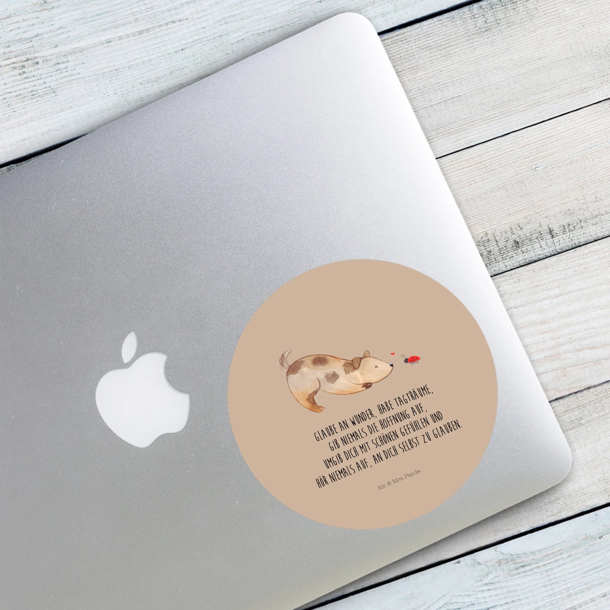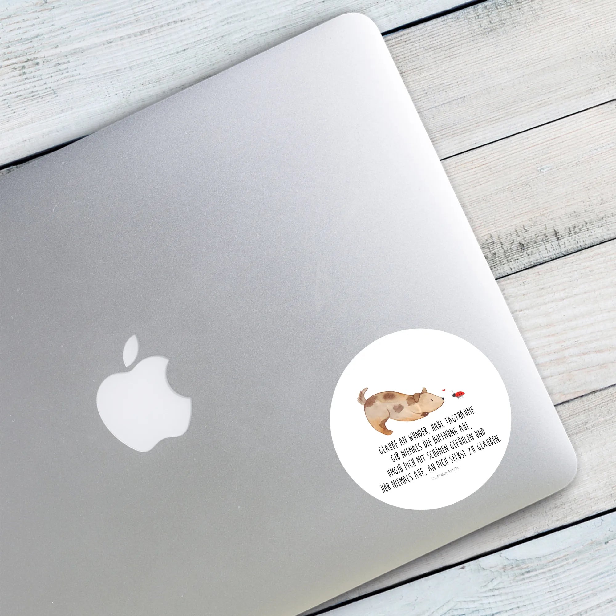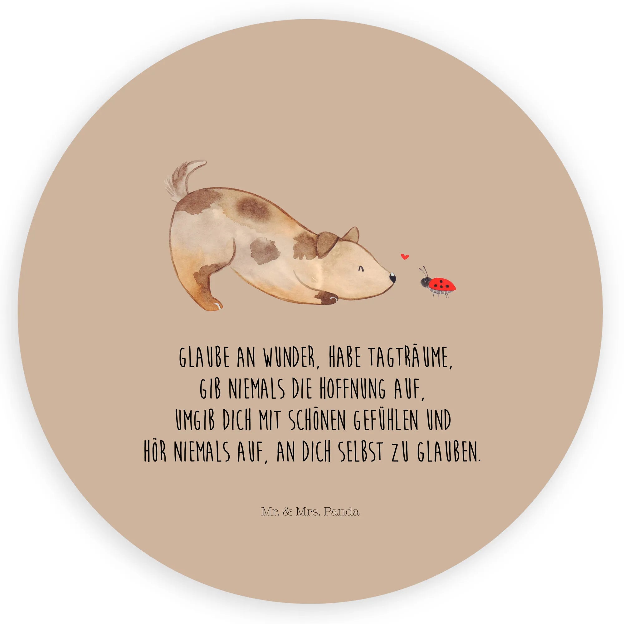 Ein bezaubernder 80mm Runder Aufkleber von Mr. & Mrs. Panda – das Motiv "Hund Marienkäfer" zeigt einen niedlichen Hund, der entzückt vor einem kleinen Marienkäfer sitzt. Von Mrs. Panda liebevoll in Aquarell gezeichnet, bringt dieser runde Sticker Wärme und Freude in Deinen Alltag. 😊🐶🐞