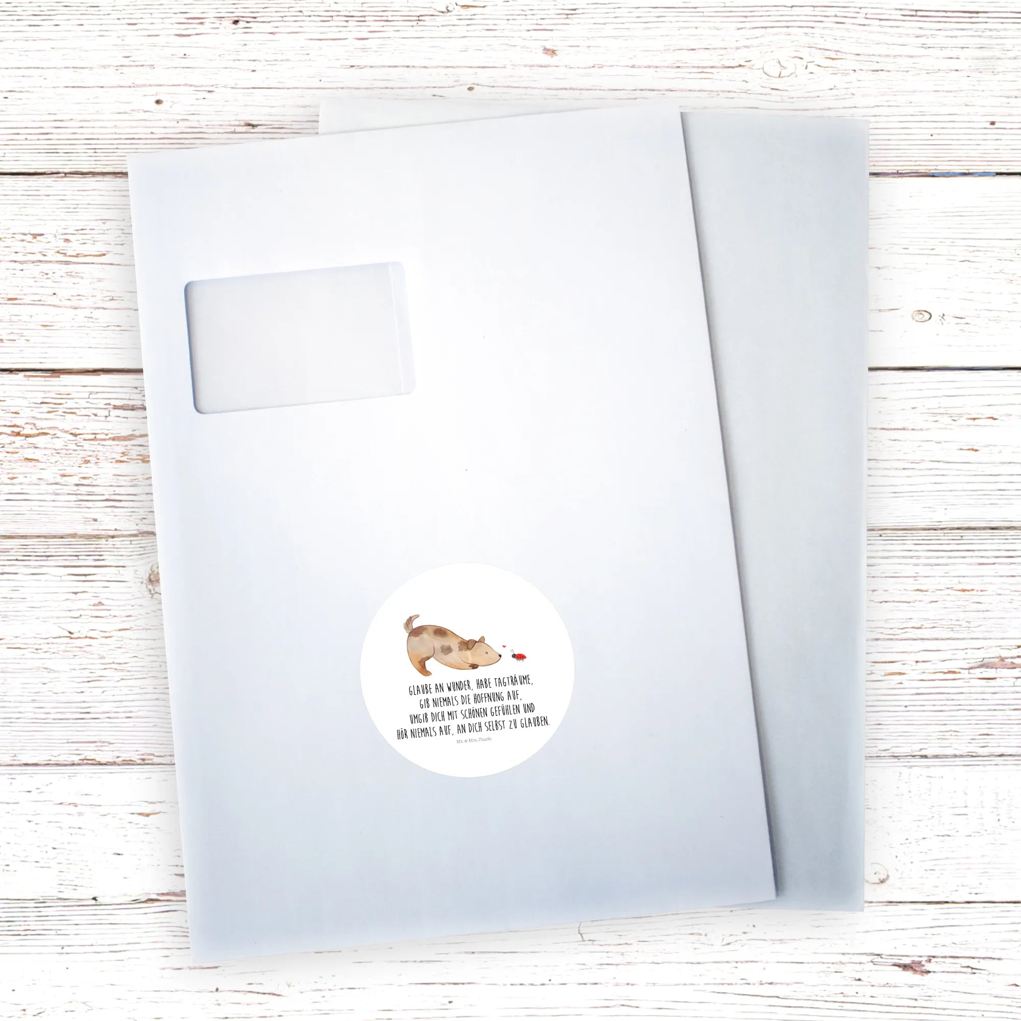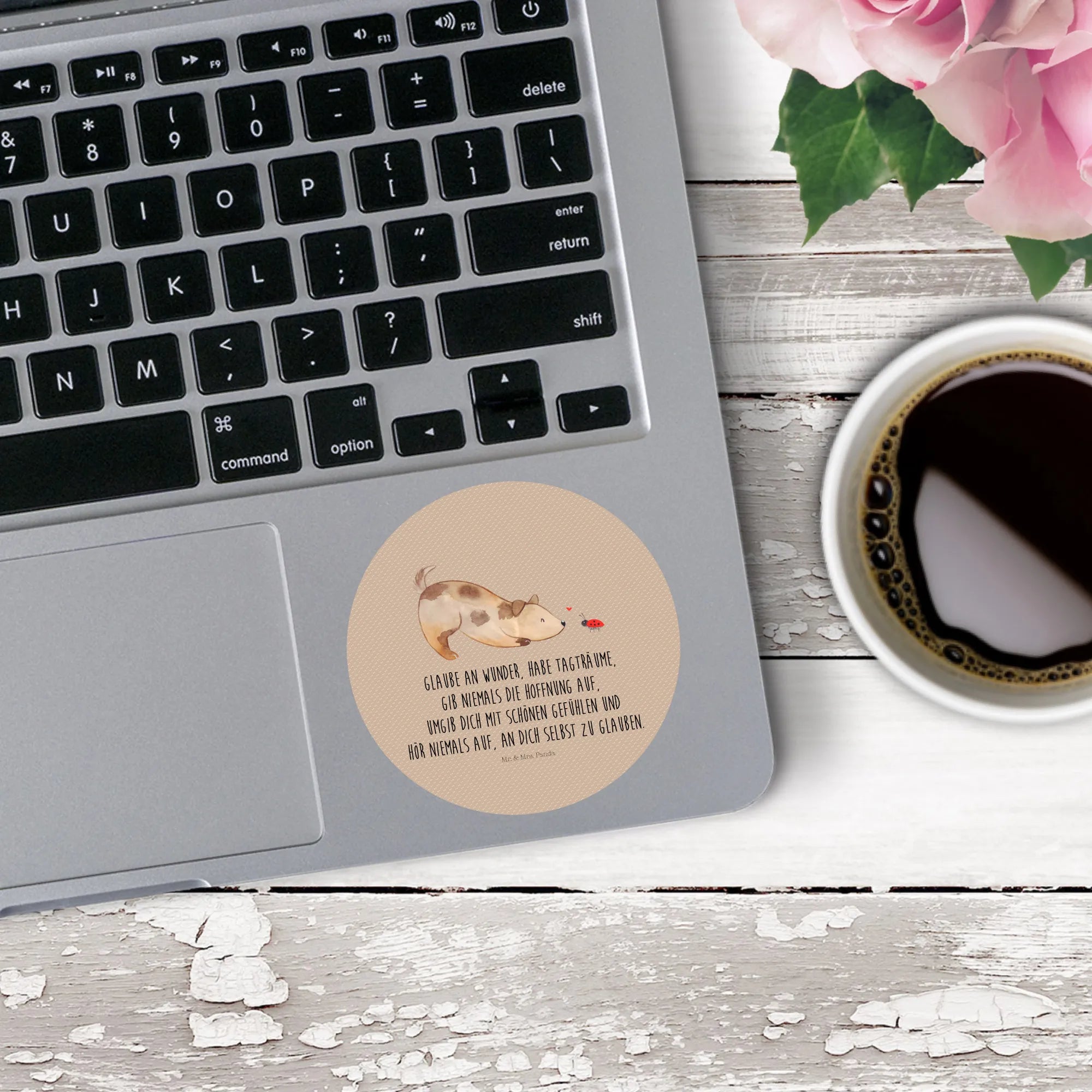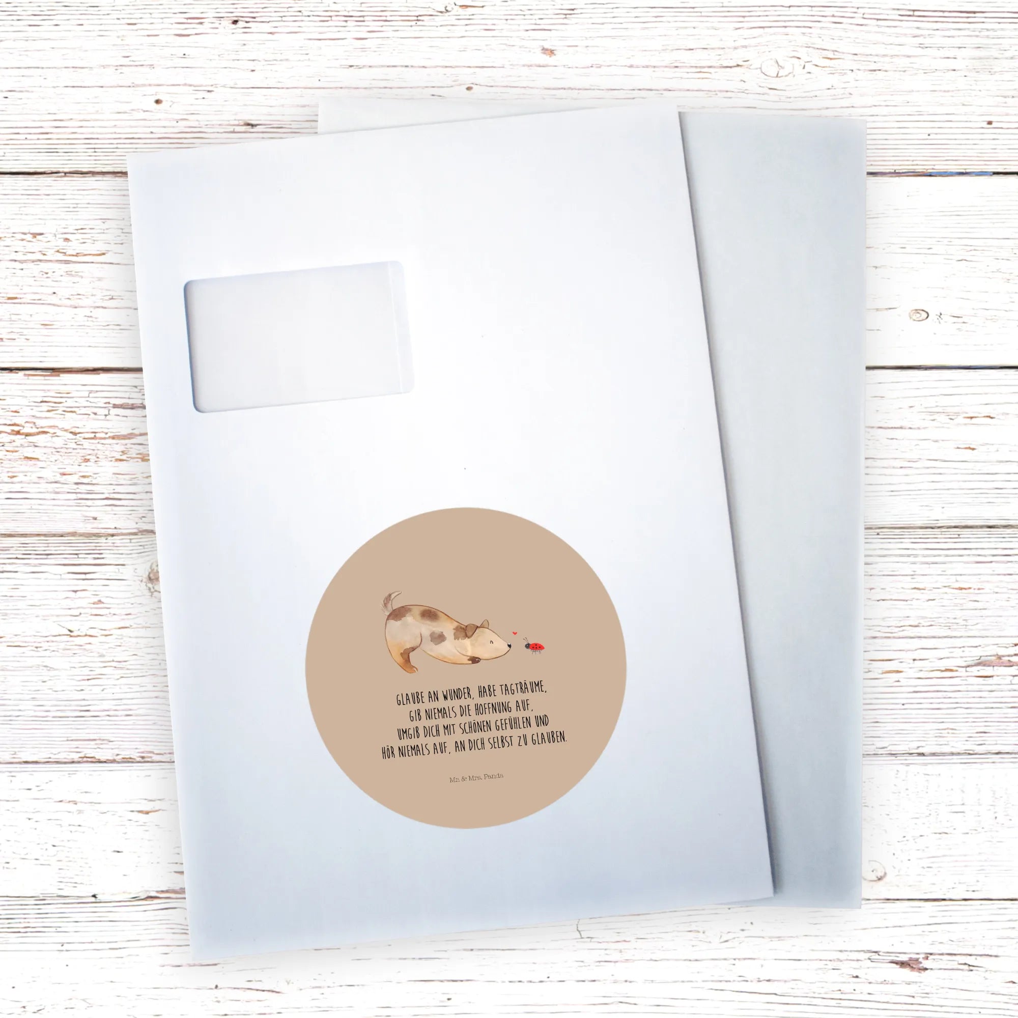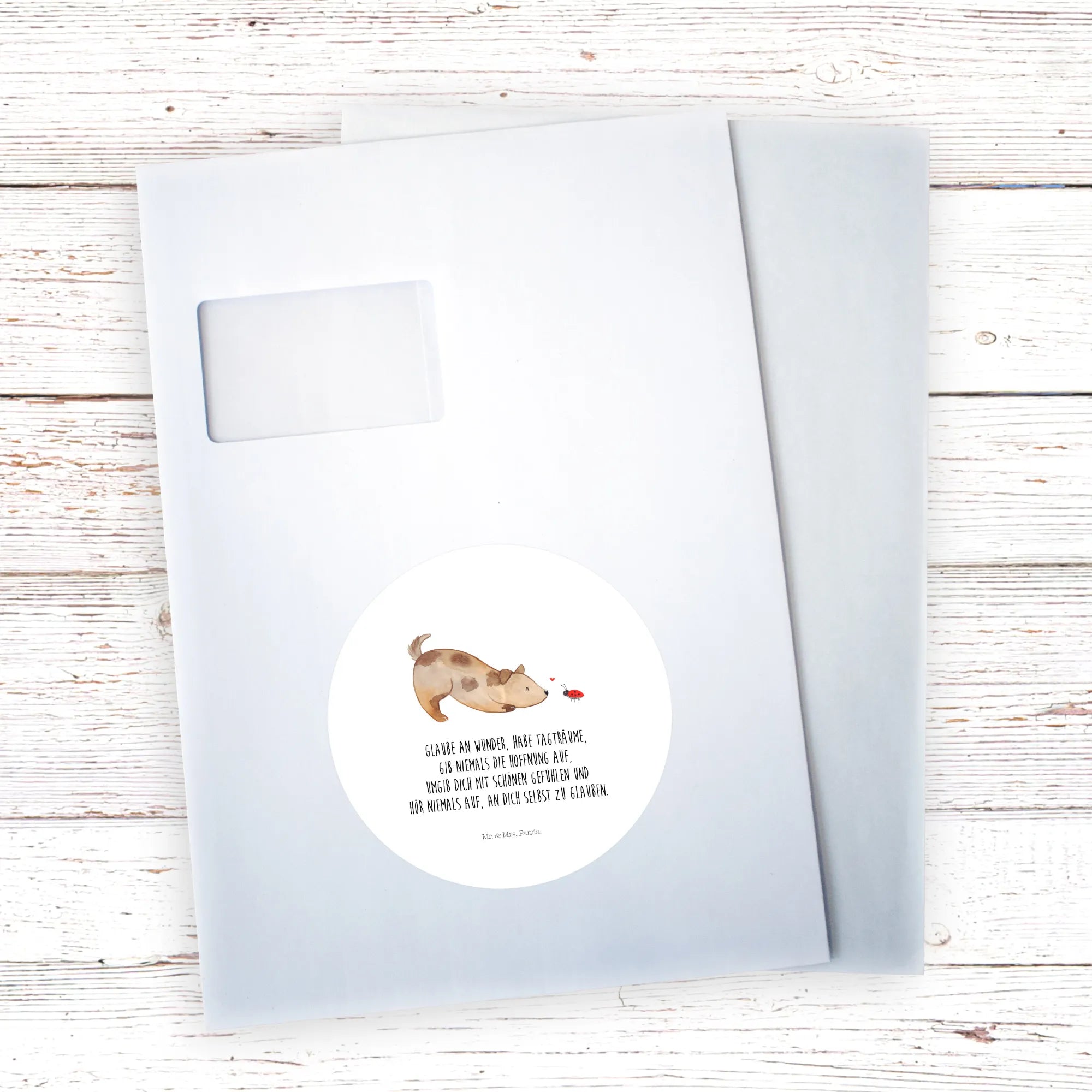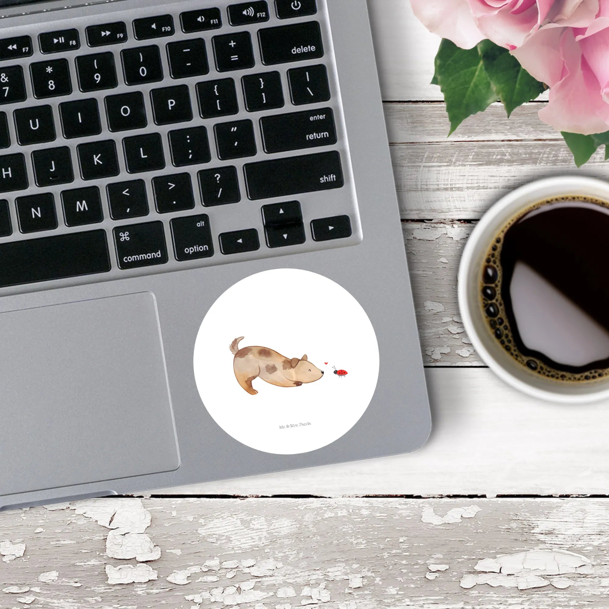 Dieser runde Sticker aus der Hunde Kollektion von Mr. & Mrs. Panda zeigt ein zauberhaftes Motiv: Ein niedlicher Hund, der fasziniert einen kleinen Marienkäfer betrachtet. Ein liebevoll gezeichnetes Aquarell, das sofort gute Laune macht und vielseitig einsetzbar ist 😊