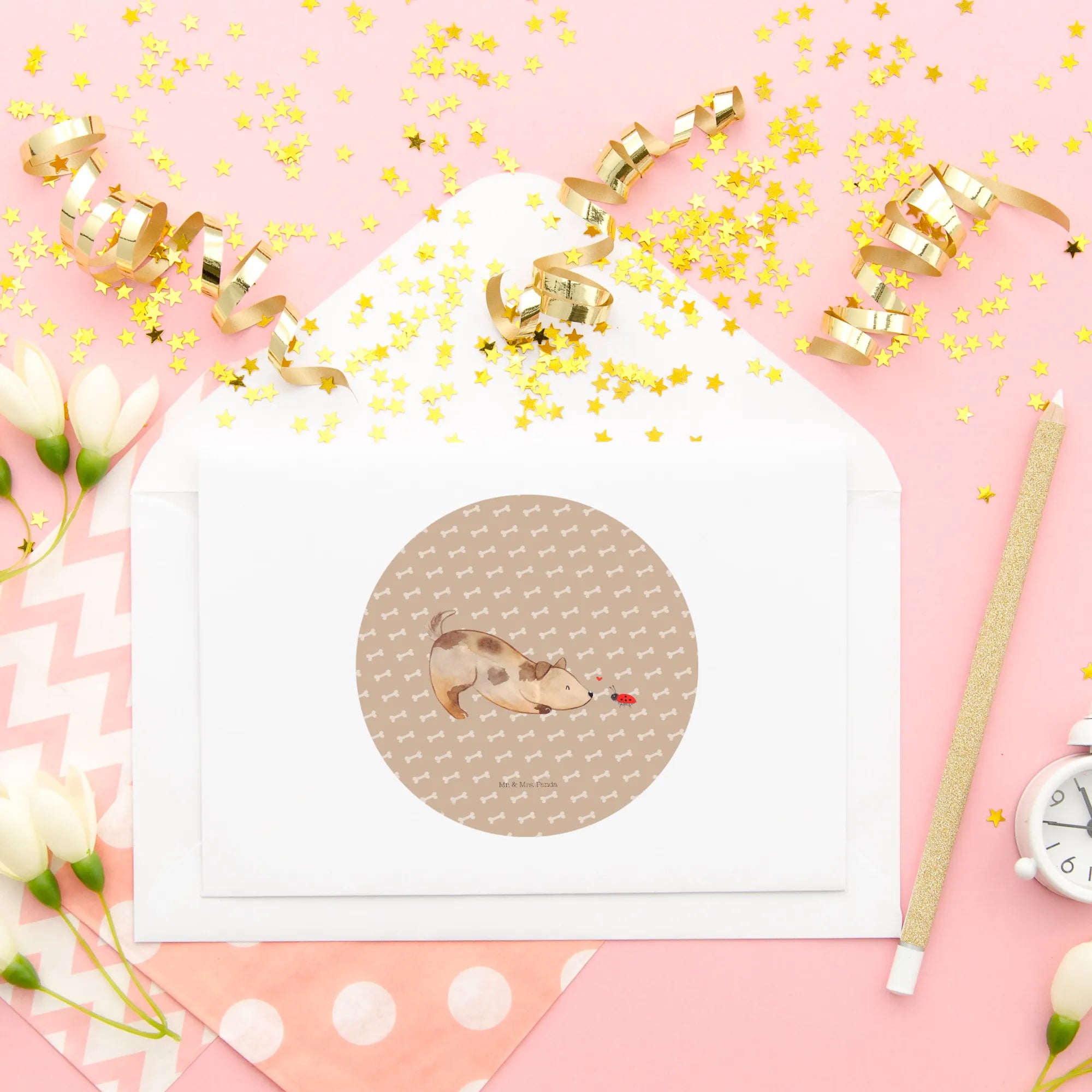 • Niedliches Hund & Marienkäfer Motiv, ideal als runder Aufkleber