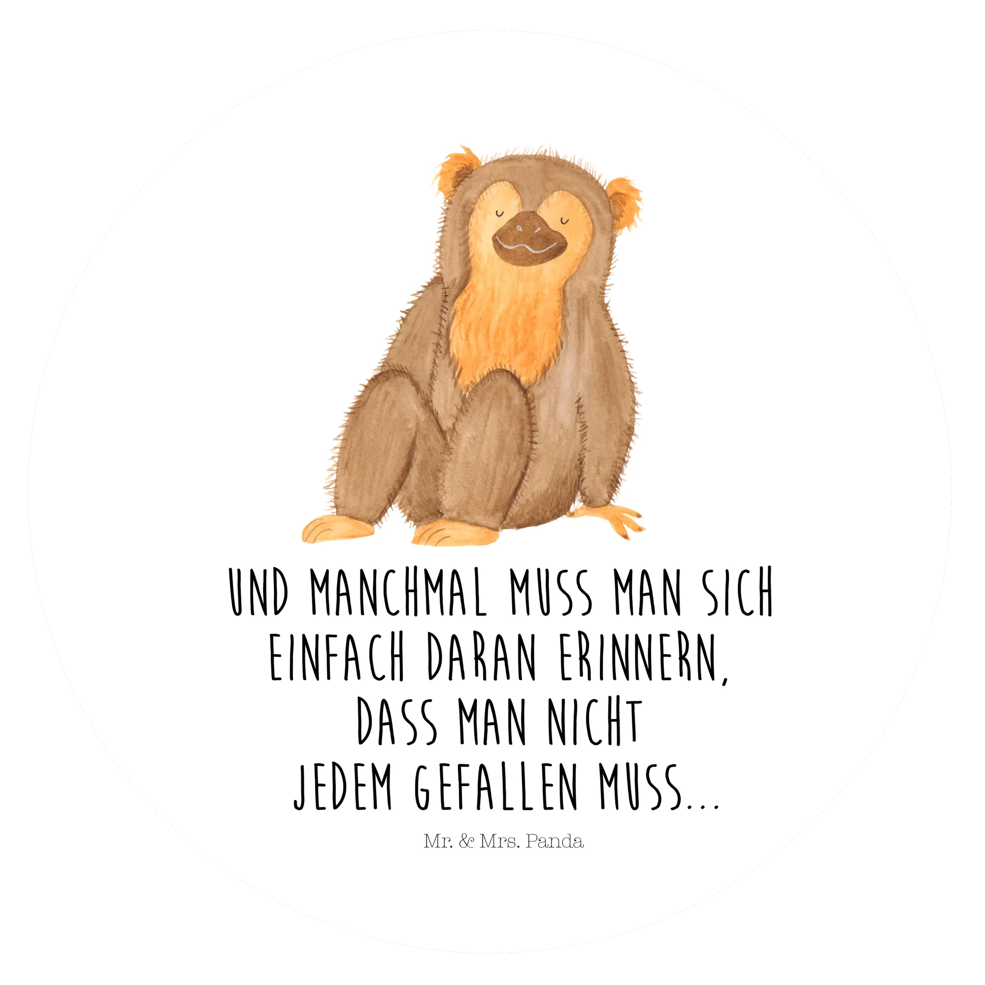 Ein zauberhafter 80mm runder Aufkleber aus der Afrika Kollektion von Mr. & Mrs. Panda – mit dem frechen Affen Konrad und dem herzlichen Spruch: „Und manchmal muss man sich einfach daran erinnern, dass man nicht jedem gefallen muss...“. Ein kleiner, feiner Sticker, der Mut macht und ein Lächeln schenkt. 🌿