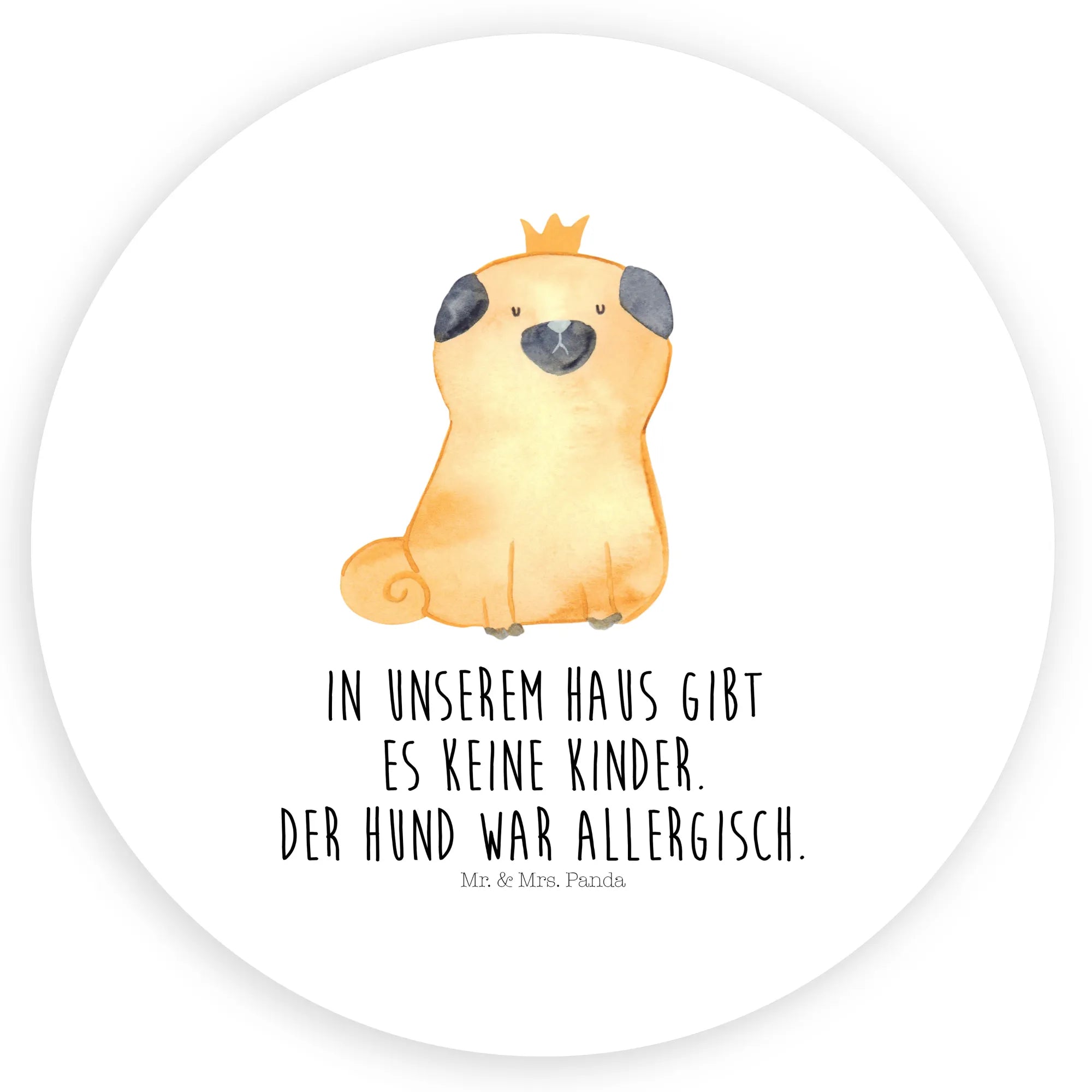 Crowned Pug Humor - 'We don’t allow children in our home. The dog is allergic.'