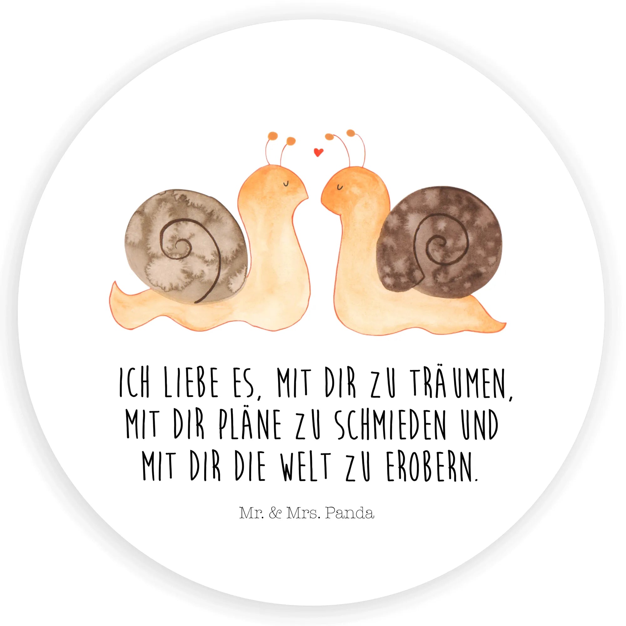 Round sticker Snails in love - 80mm Round Sticker - with a saying - White