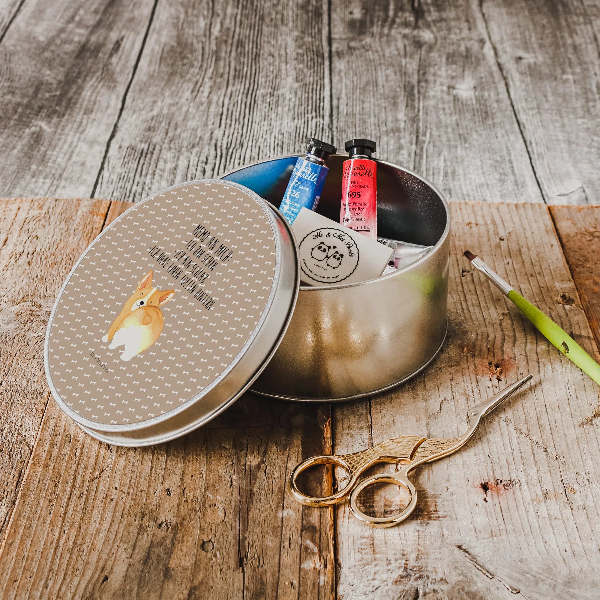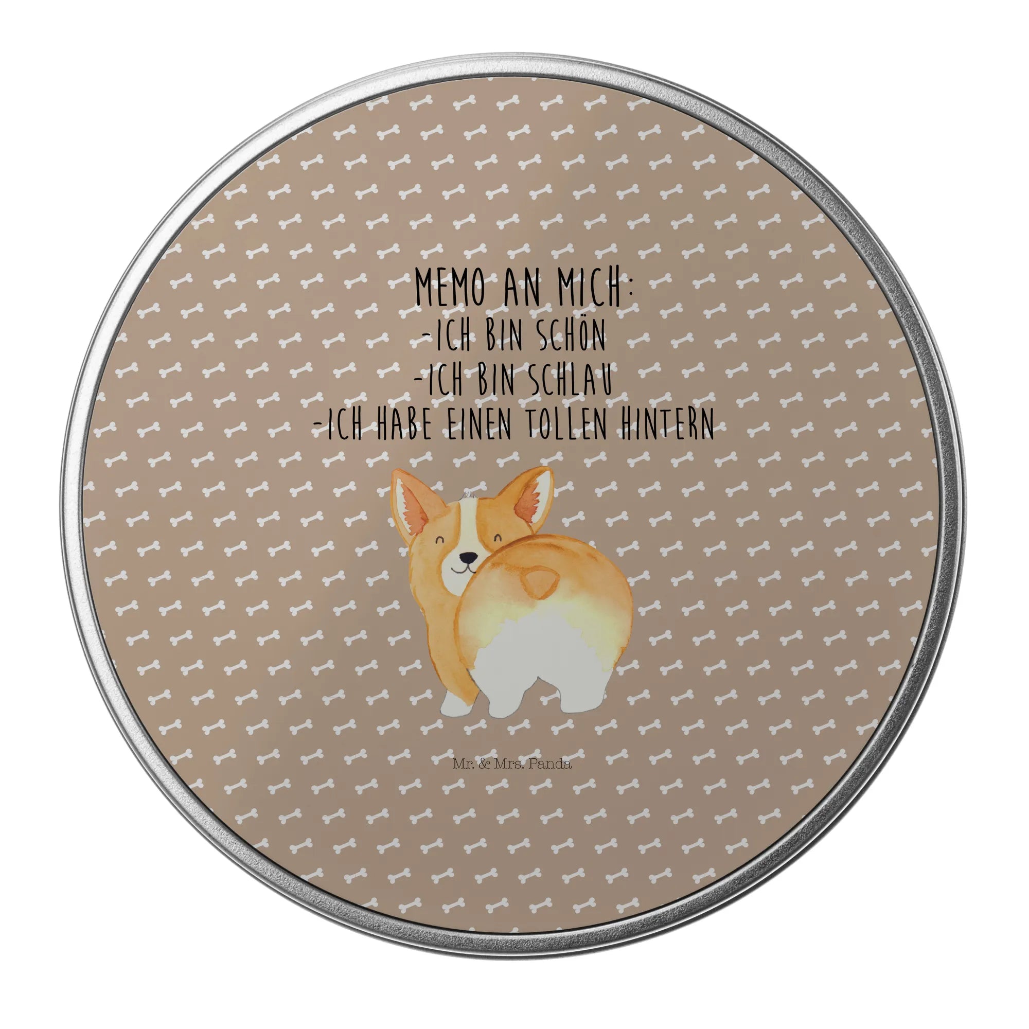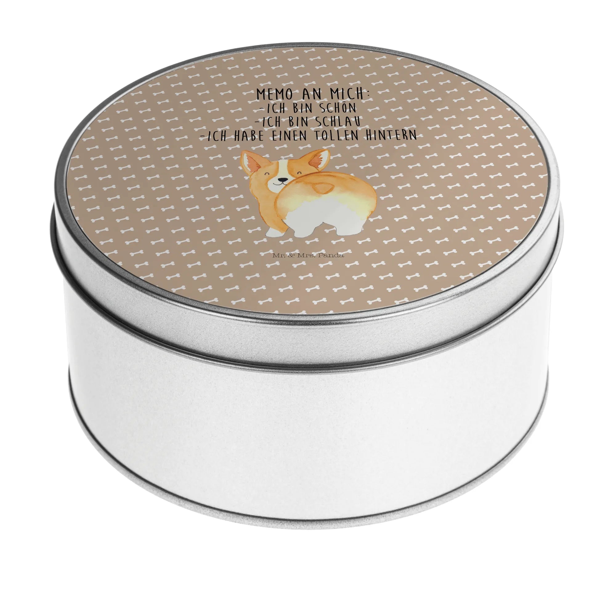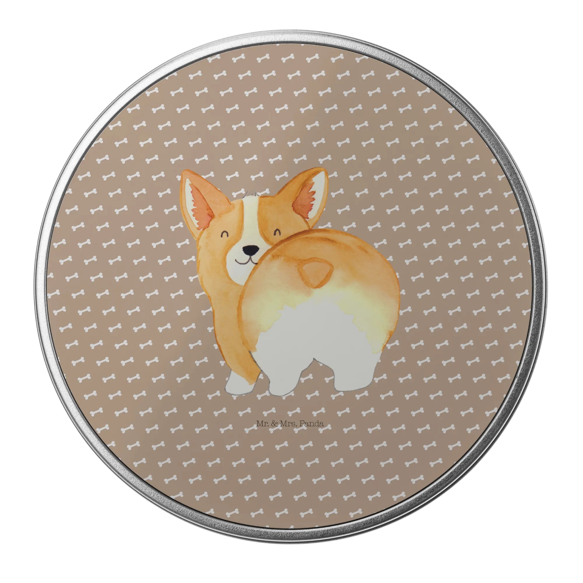 Round tin corgi buttocks - with a saying