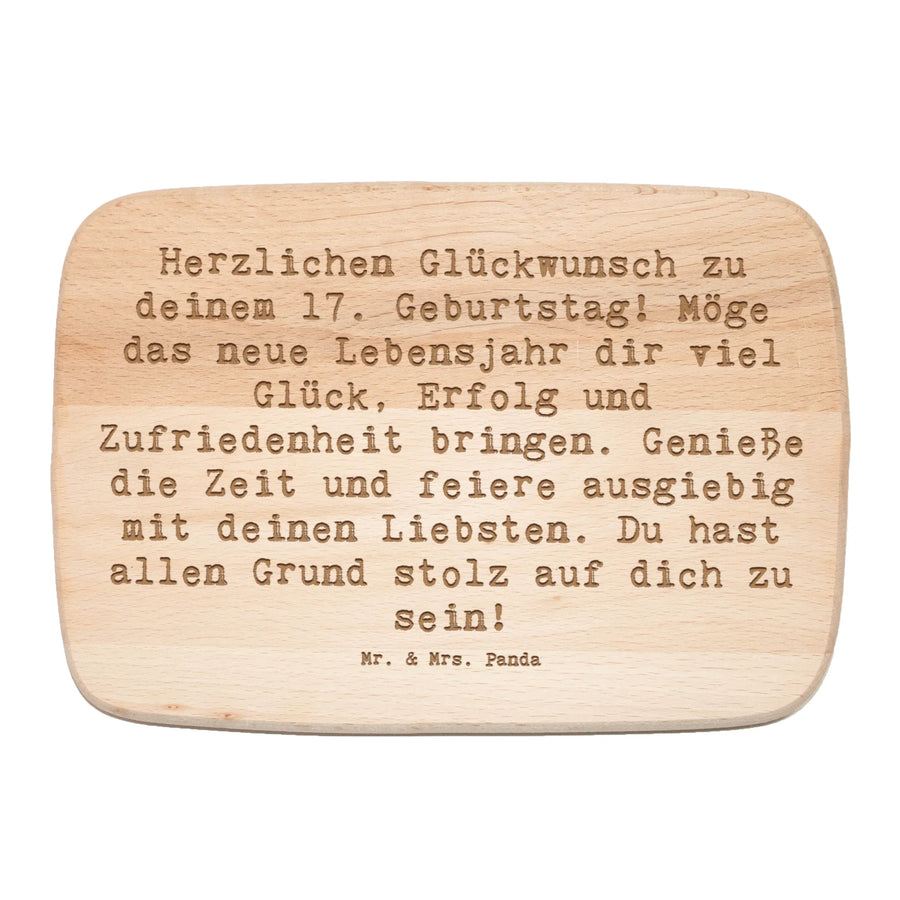 Das perfekte Geschenk für den 17. Geburtstag – unser wunderschönes Frühstücksbrett von Mr. & Mrs. Panda! Es ist nicht nur ein praktisches Küchenbrett, sondern auch ein liebevoll gestaltetes Stück, das jedem Frühstück das gewisse Etwas verleiht. Mit dem herzlichen Slogan "Herzlichen Glückwunsch zu deinem 17. Geburtstag! Möge das neue Lebensjahr dir viel Glück, Erfolg und Zufriedenheit bringen. Genieße die Zeit und feiere ausgiebig mit deinen Liebsten. Du hast allen Grund stolz auf dich zu sein!" wird dieses Brett zum absoluten Highlight auf dem Frühstückstisch.