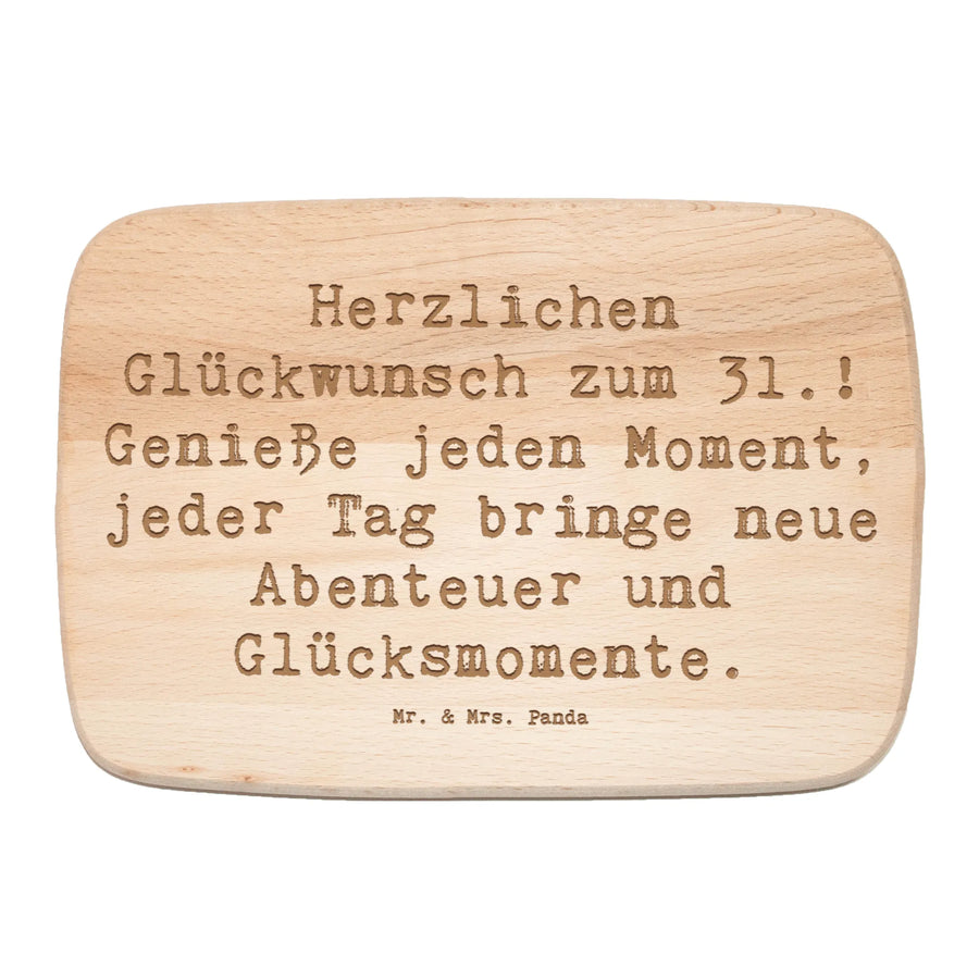 Das Frühstücksbrettchen von Mr. & Mrs. Panda ist das perfekte Geschenk für alle, die ihren 31. Geburtstag gebührend feiern möchten! Hergestellt aus hochwertigem Birkenholz, bringt dieses liebevoll gestaltete Frühstücksbrettchen nicht nur Stil, sondern auch eine persönliche Note auf den Frühstückstisch. Mit dem Spruch 'Herzlichen Glückwunsch zum 31.! Genieße jeden Moment, jeder Tag bringe neue Abenteuer und Glücksmomente.' wird es zu einem unverwechselbaren Highlight, das jede Feierlichkeit bereichert.