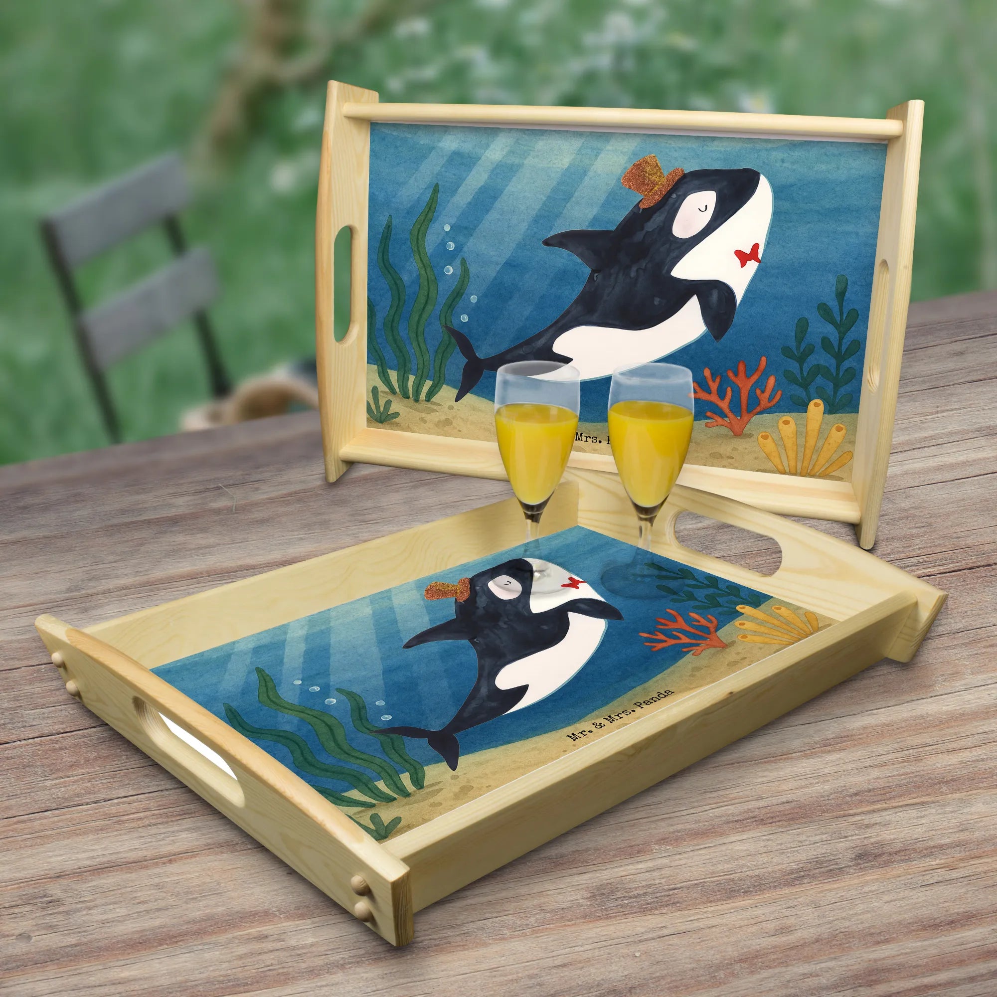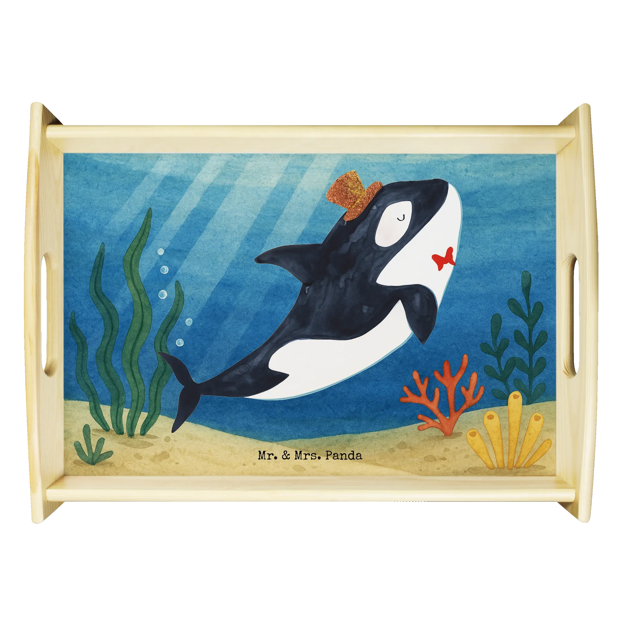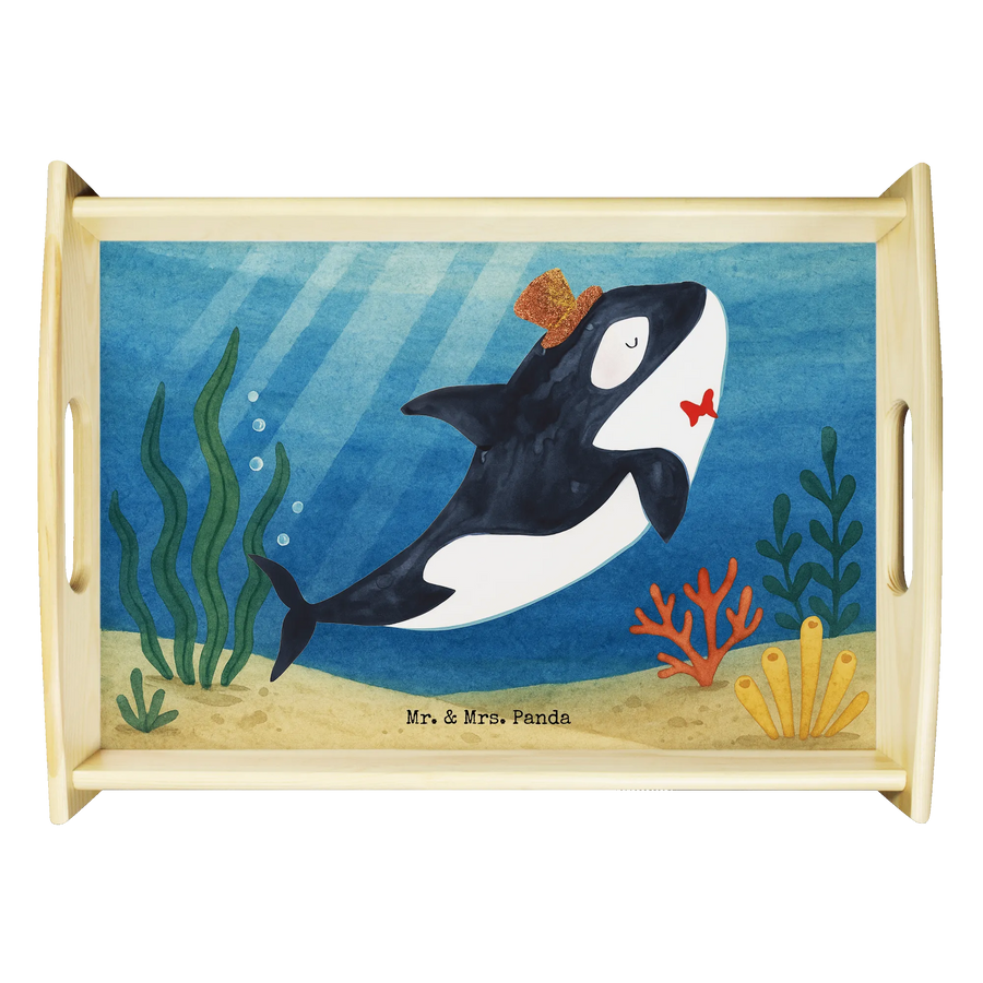Das einzigartige Serviertablett von Mr. & Mrs. Panda wird dein Frühstücksbuffet zum Erlebnis machen! Mit seinen großzügigen Maßen von 480 mm x 480 mm x 65 mm und einem Gewicht von 925 g ist es die perfekte Kombination aus Funktionalität und Stil. Aus hochwertigem, lasiertem Echtholz gefertigt, verzückt das Tablett mit einem strahlenden Druck, der für gute Laune sorgt. Ob im Bett oder auf dem Sofa, die seitlichen Griffmulden garantieren ein angenehmes Handling. Die spezielle Anti-Rutsch Beschichtung sorgt dafür, dass alles sicher an seinem Platz bleibt. Dank der kratzfesten Oberfläche ist das Tablett sehr pflegeleicht – einfach mit einem feuchten Tuch und etwas Spülmittel abwischen. Bitte nicht einweichen! Denke daran, dass die Anfertigung wegen der hohen Qualität etwas Zeit in Anspruch nimmt.