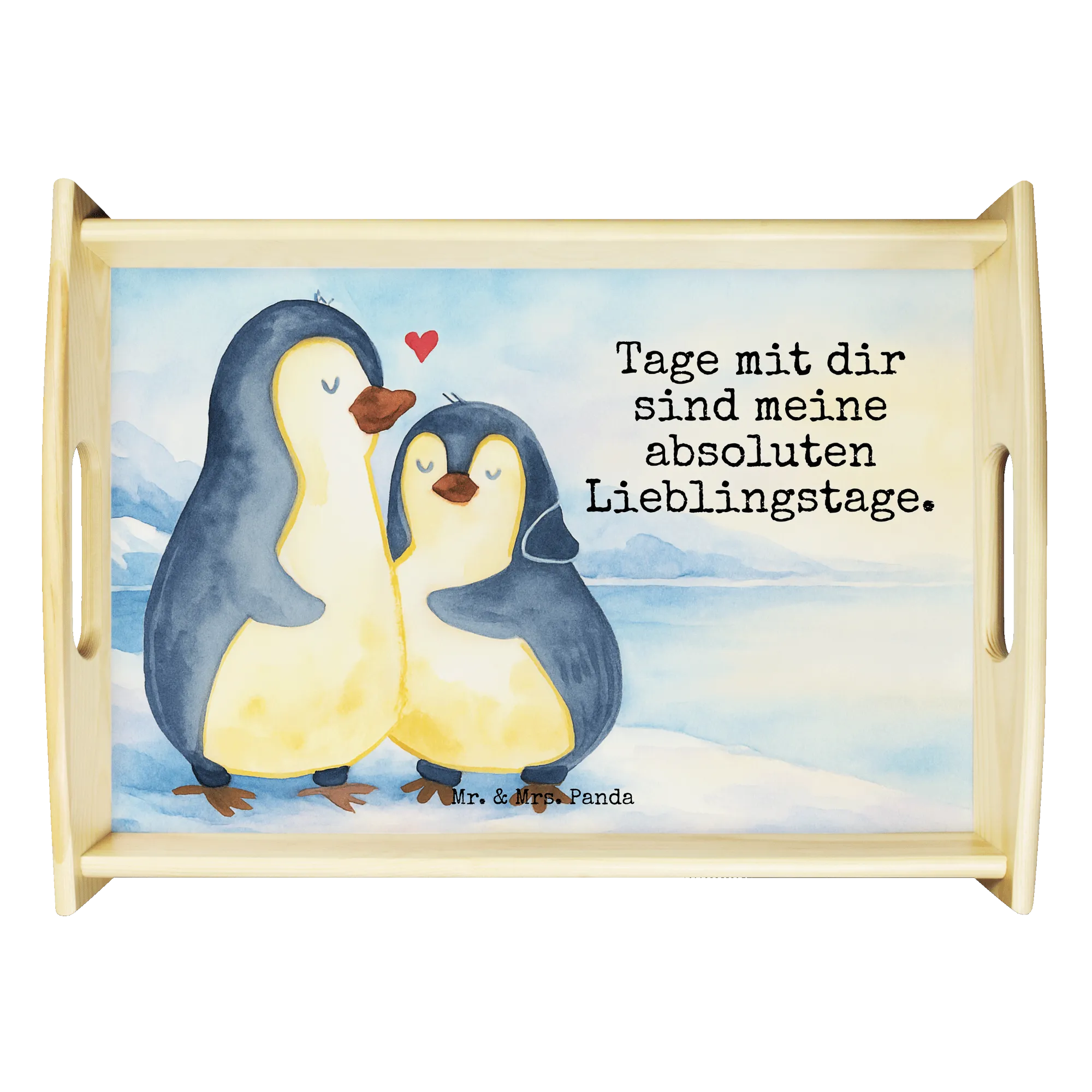 Serving tray Penguin embrace Design - with saying