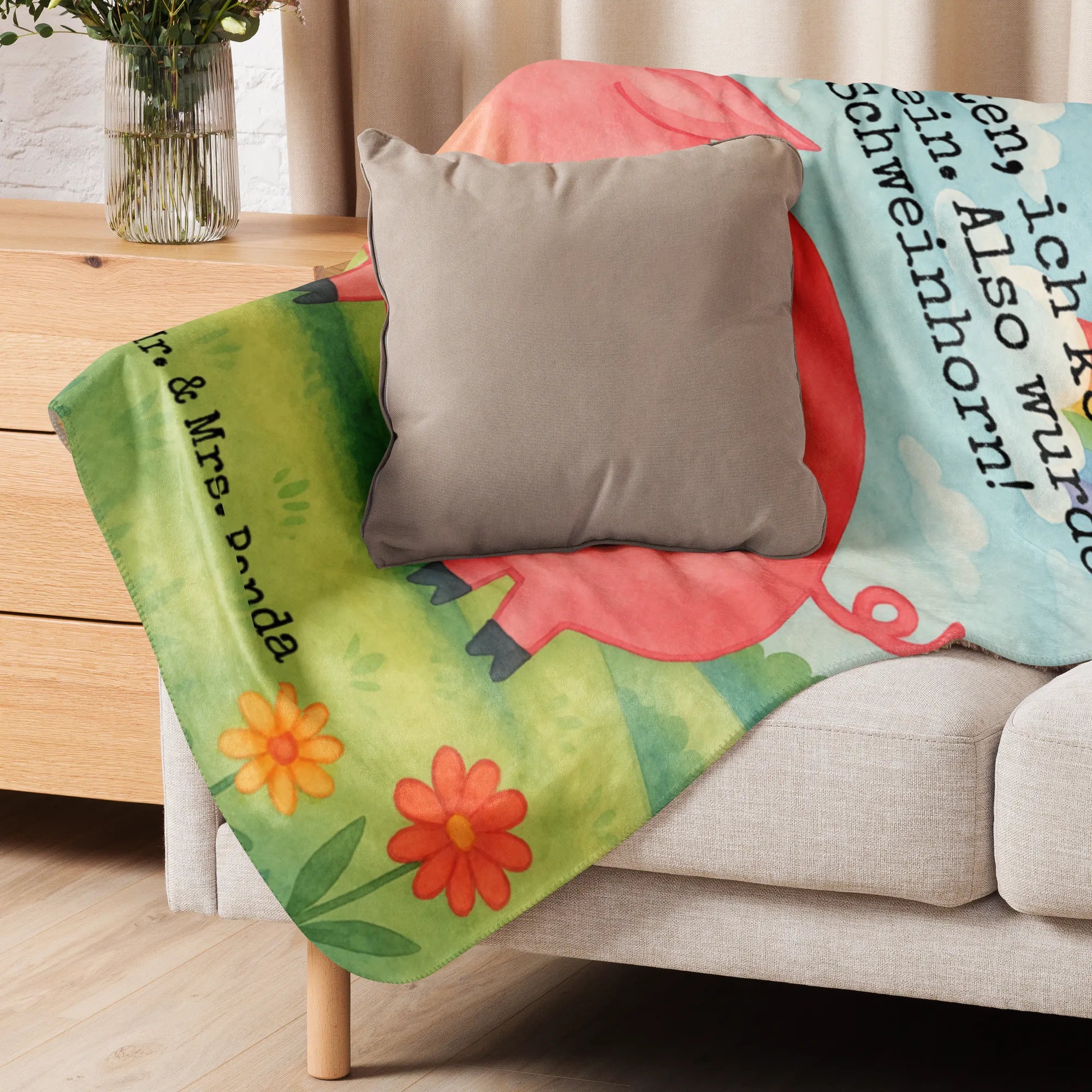 🐼 Uplift your mood with our whimsical Sherpa blanket adorned with fun quotes and designs!
