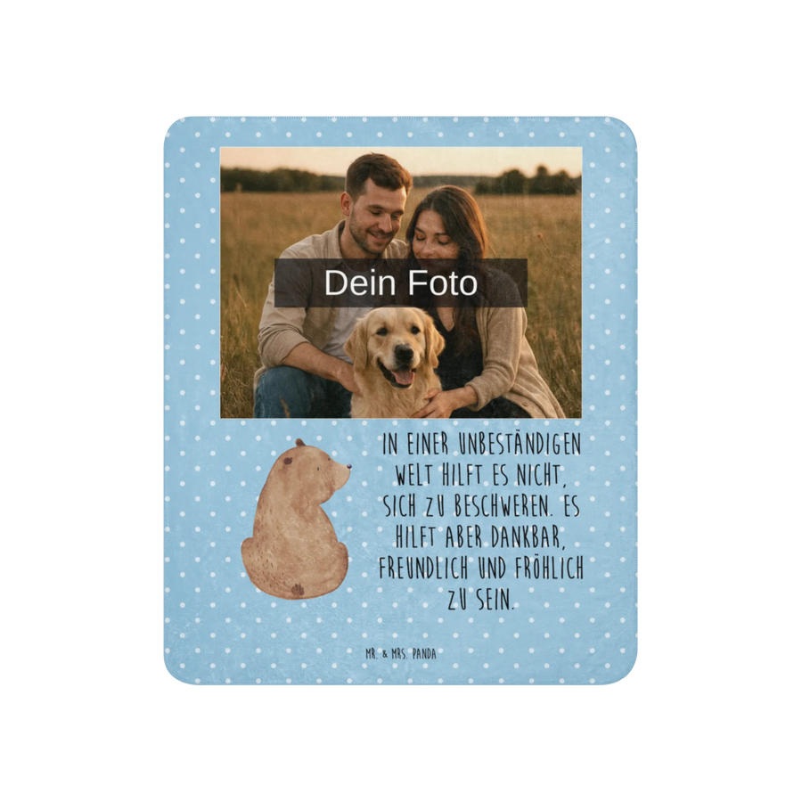 Lass dich von der Sherpa Foto Kuscheldecke von Mr. & Mrs. Panda verwöhnen! Sie misst 1500 mm x 1000 mm und ist dein neuer Begleiter für entspannte Stunden. Gefertigt aus 100% ultraweichen Polyesterfasern ist diese Decke nicht nur kuschelig, sondern auch eine Augenweide. Der glatte Seitenstoff sowie die flauschige Sherpa-Seite bieten eine wunderbare Haptik und Wärme. Leuchtende Farben und die Möglichkeit, dein Wunschfoto aufdrucken zu lassen, ermöglichen es dir, ein ganz persönliches Geschenk für deine Liebsten zu kreieren. Diese Decke ist ideal zum Kuscheln auf der Couch, als Überwurf für dein Bett oder einfach nur zur Dekoration deines Wohnzimmers. Bevor du sie das erste Mal nutzt, denke daran, sie zu waschen, um die besten Ergebnisse zu erzielen. Pflegehinweise: bitte milde Reinigungsmittel verwenden. Mit dieser Kuscheldecke wirst du garantiert viele gemütliche Momente erleben!