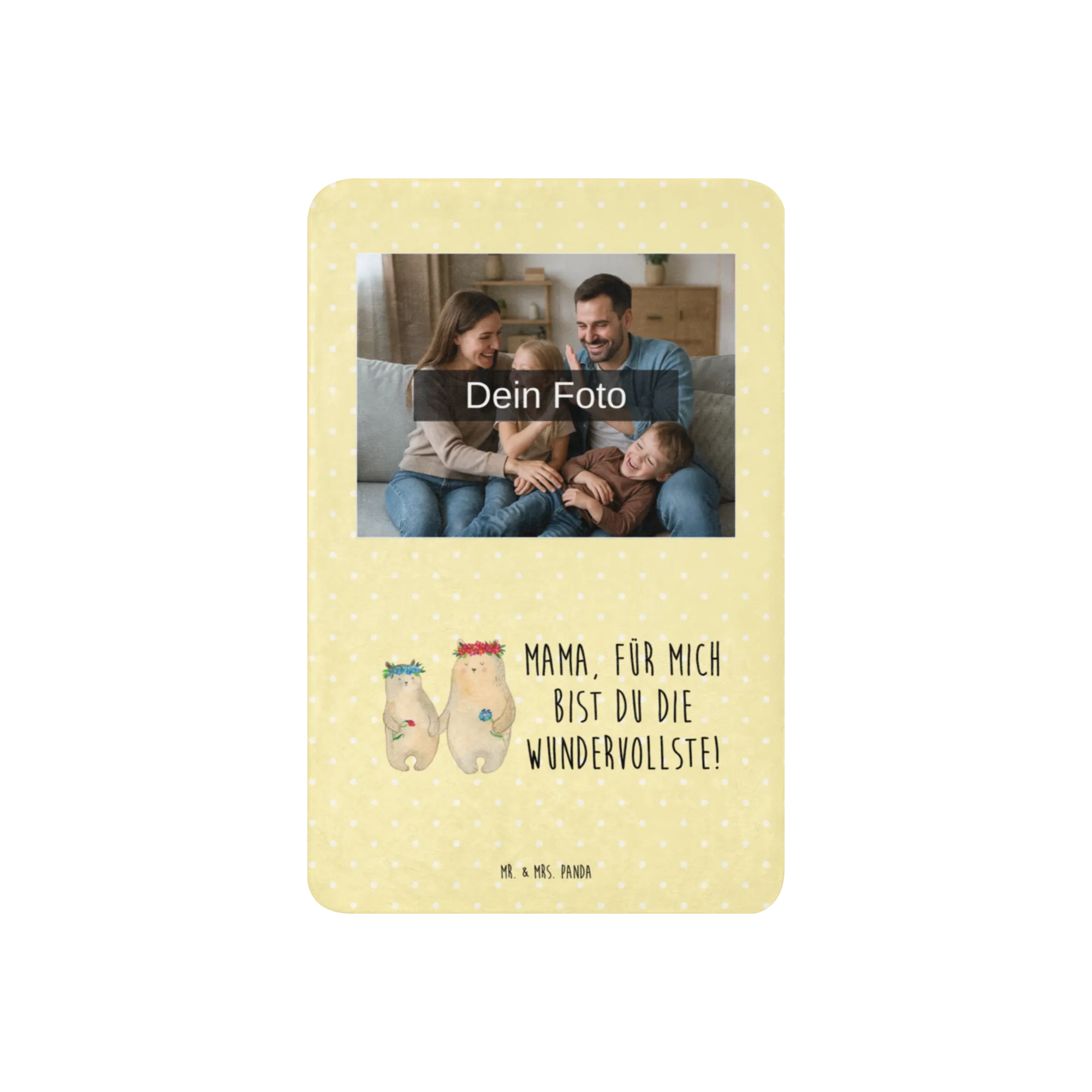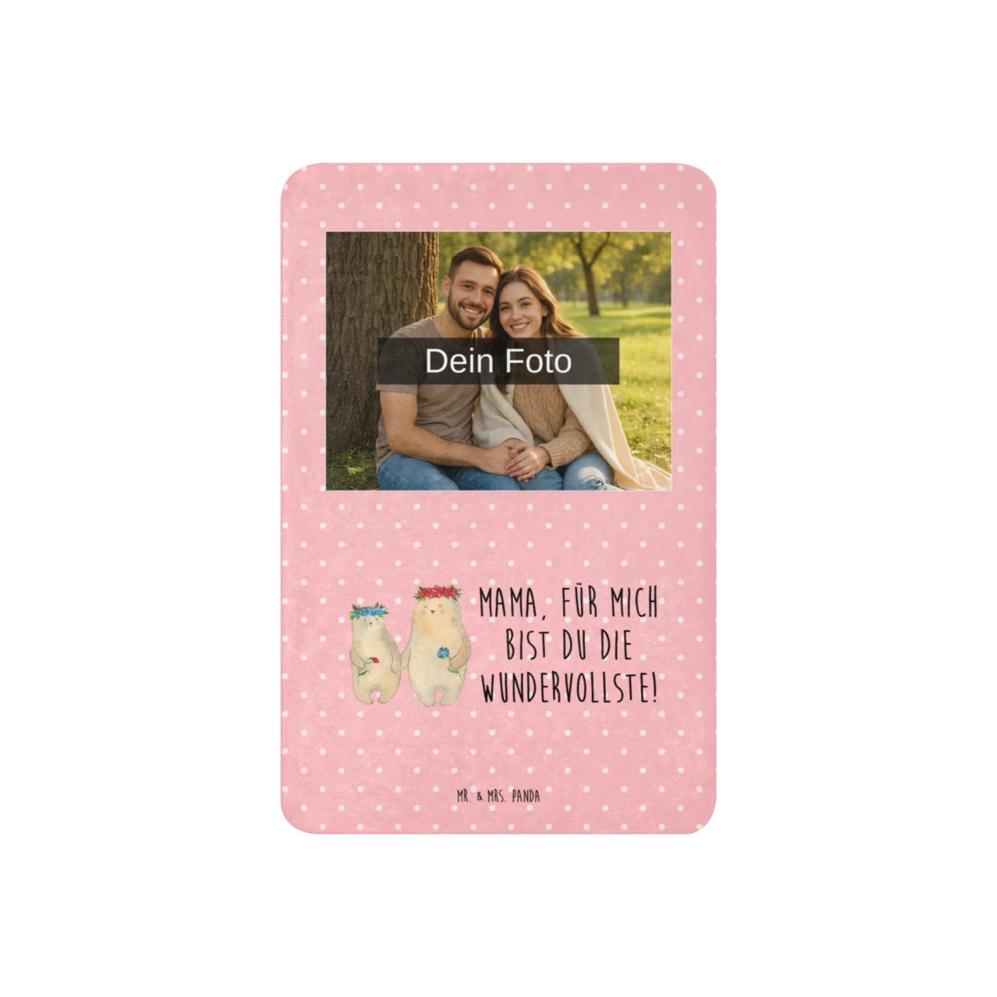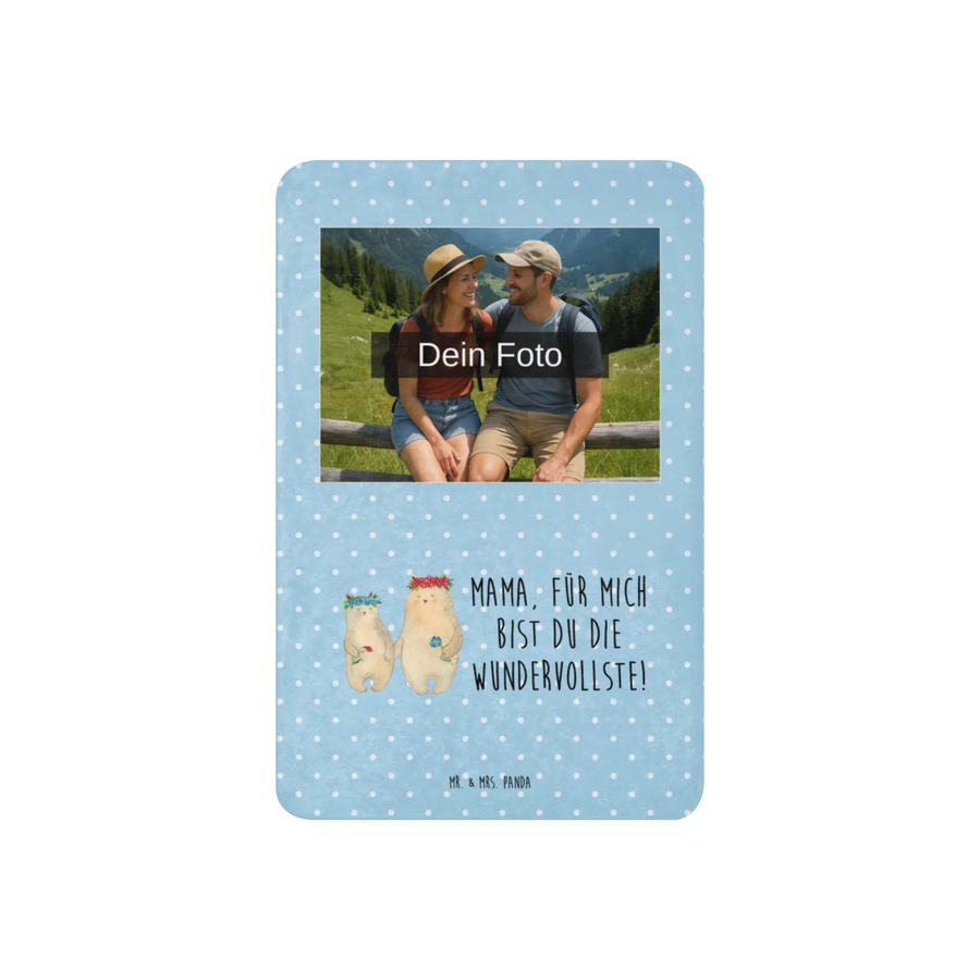 Inmitten von Natur und Freude begegnen uns zwei strahlende Bären, die das Herz jeder Mama berühren. Mit Blumenkränzen geschmückt, verkörpern sie die Liebe zwischen Müttern und ihren Kindern. Der Spruch 'Mama, für mich bist du die Wundervollste!' ist nicht nur eine Floskel, sondern ein wahrhaftes Gefühl, das wir für unsere Mütter empfinden. Die Bären bringen ein Lächeln und ein warmes Gefühl in unsere Herzen. Dieses Motiv erinnert uns an all die unendlichen Opfer und die bedingungslose Liebe, die unsere Mütter täglich zeigen. Egal ob zum Muttertag oder einfach so – dieses Geschenk wird deinen Lieblingsmenschen erfreuen und ihnen ein Lächeln ins Gesicht zaubern.