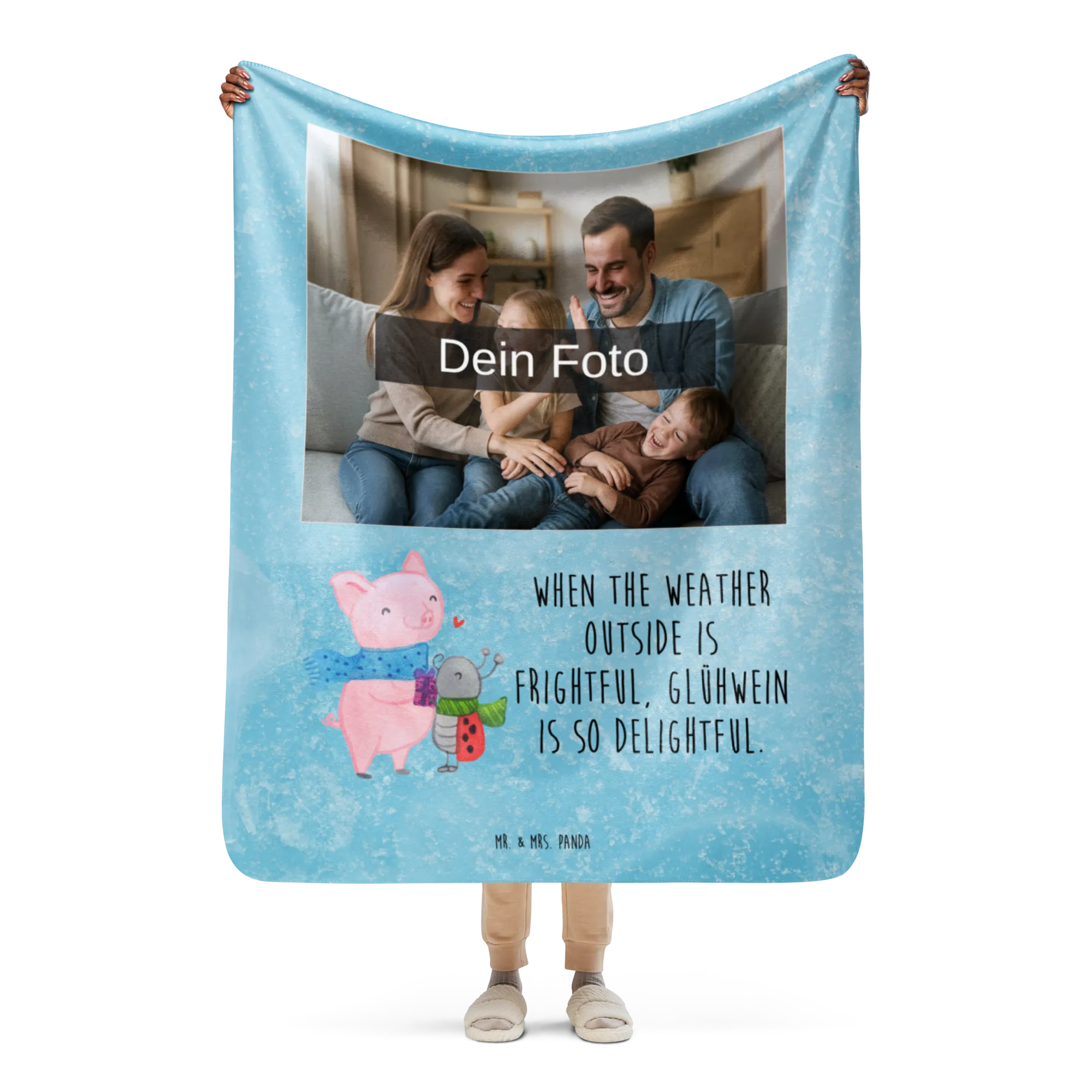 Lass dich von unserer himmlischen Sherpa Foto Kuscheldecke von Mr. & Mrs. Panda verwöhnen! Diese hochwertige Decke hat die Maße 1300 mm x 1550 mm und bietet dir unvergleichlichen Komfort und Wärme. Hergestellt aus 100 % ultrweichen Polyesterfasern, mit einer Obermaterialkombination von 51,5 % und einem kuscheligen Sherpa-Gewebe von 48,5 %, sorgt diese Decke für ein Gefühl von purer Gemütlichkeit. Die beiden Stoffarten haben eine angenehme Grammatur von 220 g/m² für den glatten Seitenstoff und 240 g/m² für das warme Sherpa. Egal, ob du auf der Couch entspannst oder die Decke als stilvollen Überwurf nutzen möchtest, ihre super leuchtenden Farben und das niedliche Design mit Sprüchen und Motiven von Mr. & Mrs. Panda machen sie zum perfekten Begleiter für gemütliche Abende. Außerdem kannst du sie mit deinem eigenen Wunschfoto personalisieren, sodass sie zu einem einzigartigen Highlight in deinem Zuhause wird. Denke daran, die Decke vor der ersten Nutzung zu waschen, um die besten Ergebnisse zu erzielen!