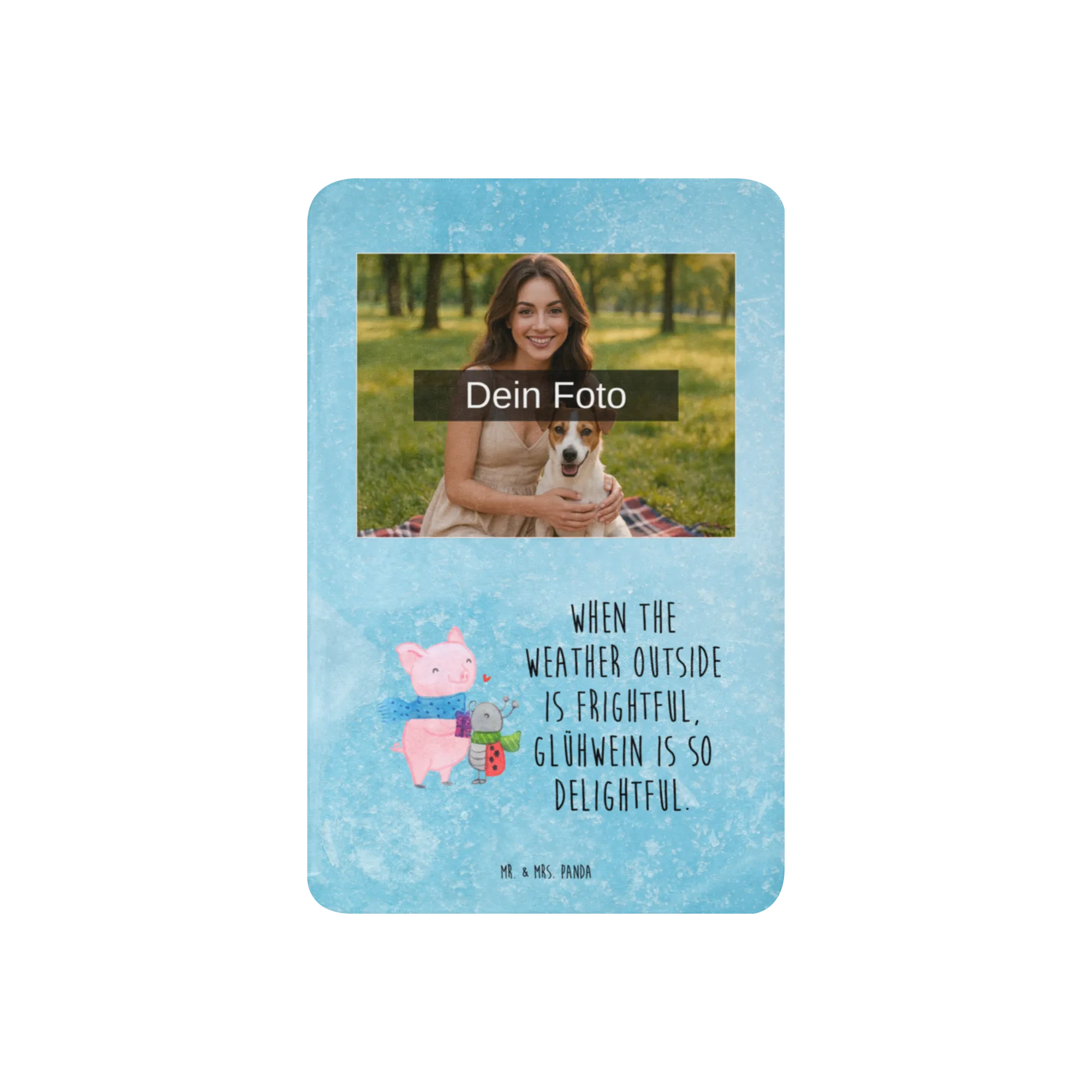 Das Glühschwein mit seinem festlichen blauen Schal und der entzückende Marienkäfer in seinem grünen Schal strahlen pure Freude aus. Sie stehen zusammen und genießen unseren heiß geliebten Glühwein, während über ihnen ein rotes Herz für Freundschaft schwebt. Ihr Motto „When the weather outside is frightful, Glühwein is so delightful“ könnte nicht passender sein. Diese liebevolle Illustration ist perfekt für alle, die die kühleren Monate mit einem warmen, herzlichen Gefühl feiern möchten. Ob als Geschenk oder für dein Zuhause, diese Szenerie erinnert uns an die Bedeutung von Gemeinschaft und Gemütlichkeit. Lass den Alltag hinter dir und genieße die kleinen Freuden des Lebens!