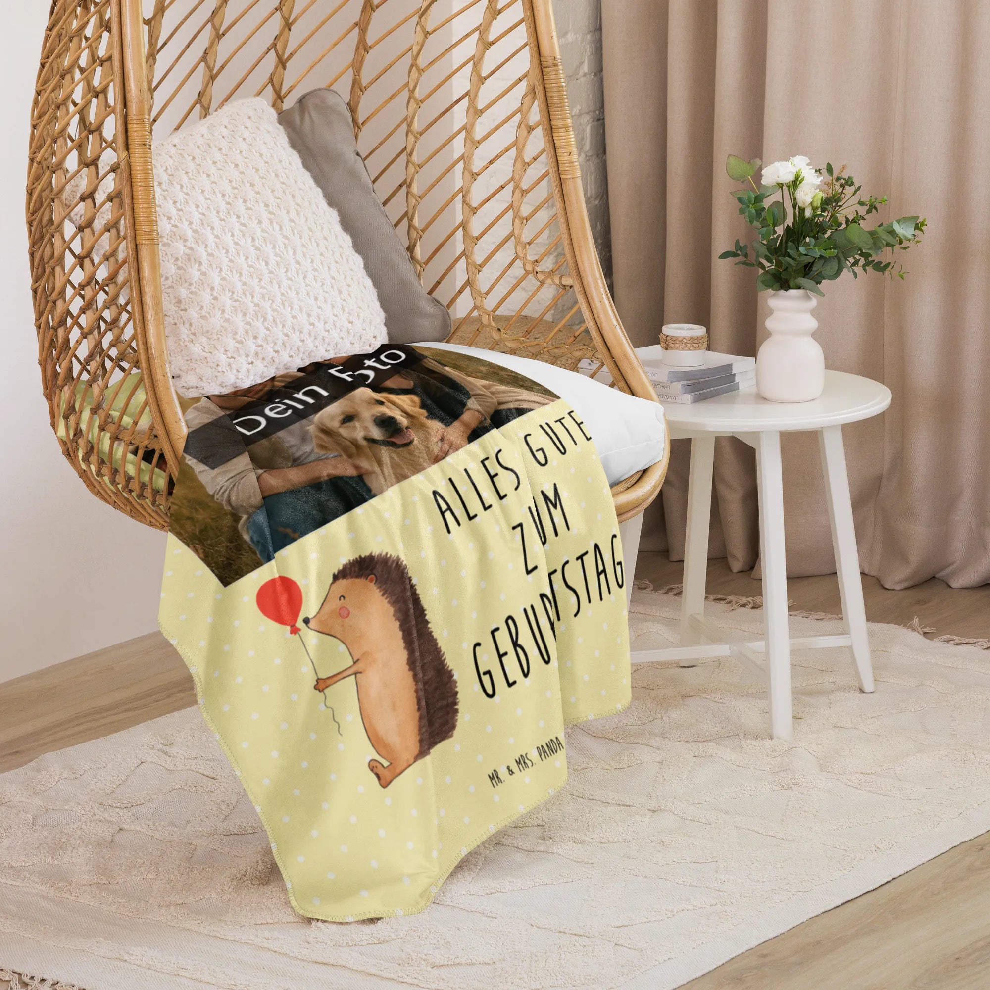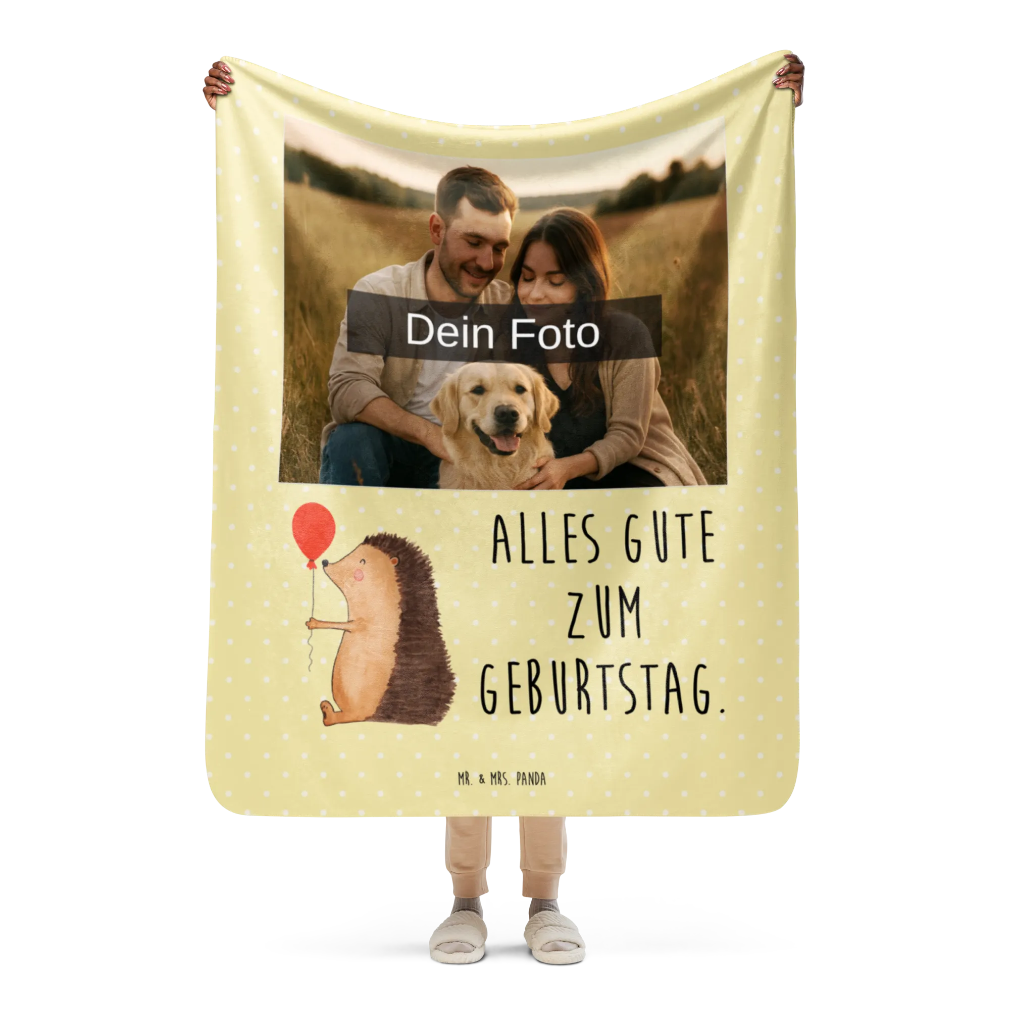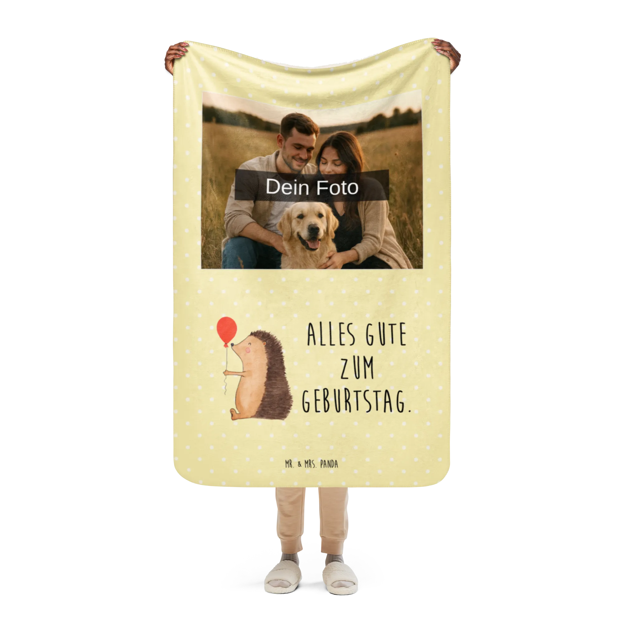Erlebe die warme Umarmung unserer Sherpa Foto Kuscheldecke von Mr. & Mrs. Panda! Mit einer großzügigen Größe von 1300 mm x 1550 mm bietet sie ausreichend Platz, um dich darin einzukuscheln. Die Decke besteht aus 100 % ultrweichen Polyesterfasern, die perfekt in 51,5 % glattem Obermaterial und 48,5 % kuscheligem Sherpa unterteilt sind. Das Anfassgefühl ist einfach himmlisch! Mit einer Stoffstärke von 220 g/m² und 240 g/m², ist diese Decke nicht nur funktional, sondern auch ein optisches Highlight in jedem Raum. Ihre leuchtenden Farben und das liebevolle Design mit Sprüchen und Motiven von Mr. & Mrs. Panda verleihen jedem Moment magische Momente. Perfekt für gemütliche Filmabende oder entspannende Stunden zu Hause. Vergiss nicht, die Decke vor der ersten Nutzung zu waschen, um ihre volle Pracht zu genießen!