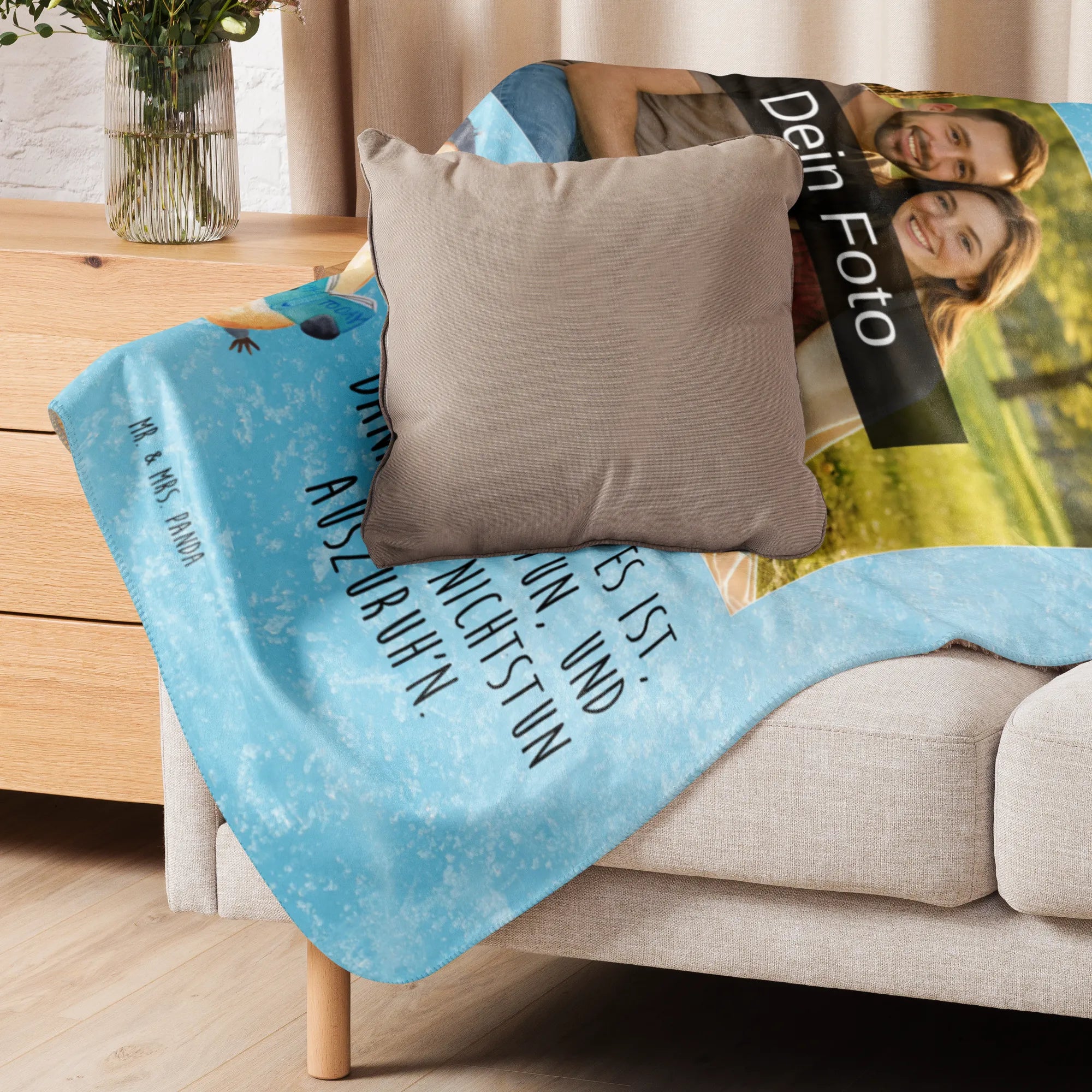 Erlebe die warme Umarmung unserer Sherpa Foto Kuscheldecke von Mr. & Mrs. Panda! Mit einer großzügigen Größe von 1300 mm x 1550 mm bietet sie ausreichend Platz, um dich darin einzukuscheln. Die Decke besteht aus 100 % ultrweichen Polyesterfasern, die perfekt in 51,5 % glattem Obermaterial und 48,5 % kuscheligem Sherpa unterteilt sind. Das Anfassgefühl ist einfach himmlisch! Mit einer Stoffstärke von 220 g/m² und 240 g/m², ist diese Decke nicht nur funktional, sondern auch ein optisches Highlight in jedem Raum. Ihre leuchtenden Farben und das liebevolle Design mit Sprüchen und Motiven von Mr. & Mrs. Panda verleihen jedem Moment magische Momente. Perfekt für gemütliche Filmabende oder entspannende Stunden zu Hause. Vergiss nicht, die Decke vor der ersten Nutzung zu waschen, um ihre volle Pracht zu genießen!