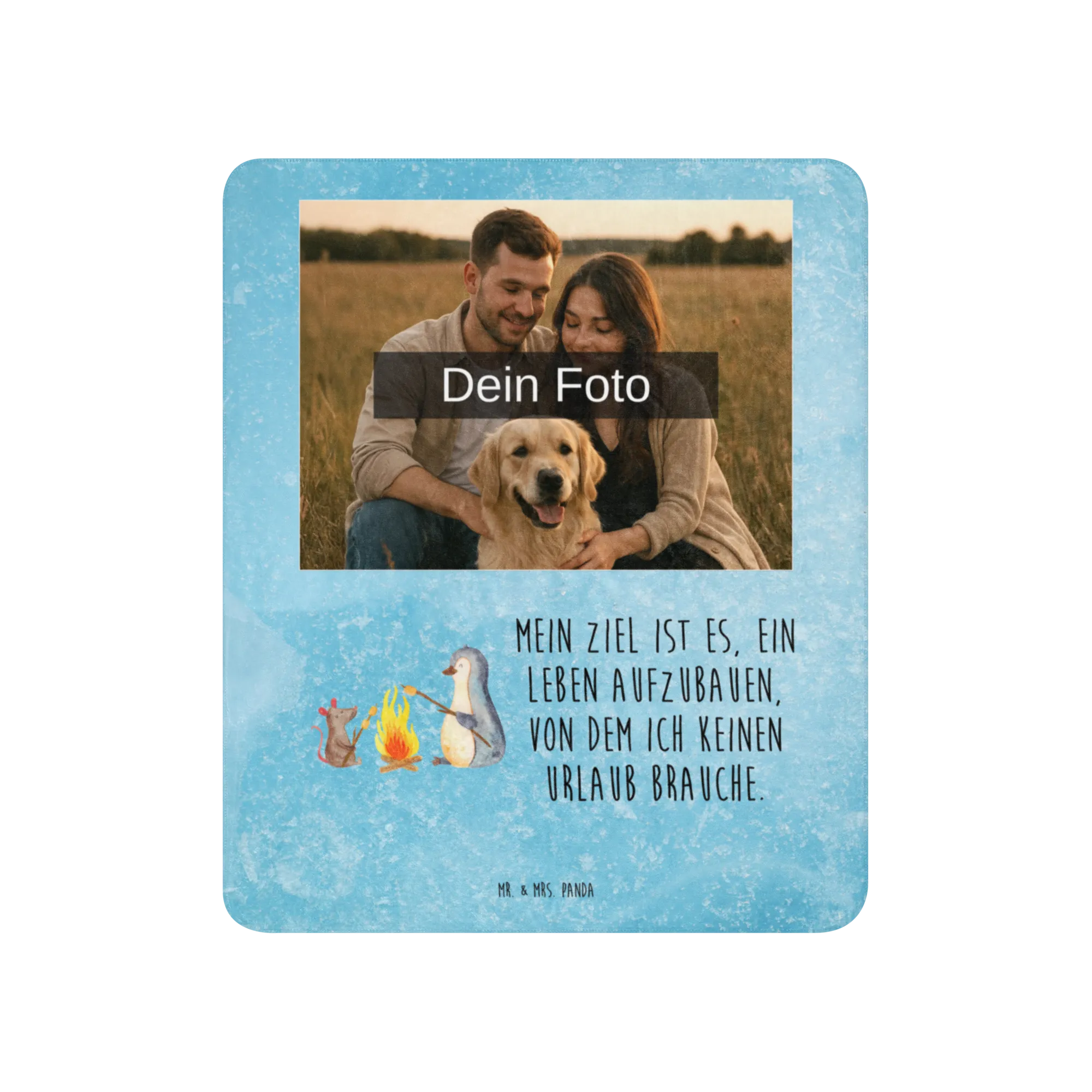Sherpa Photo Cuddle Blanket Penguin campfire - 130 x 155 cm