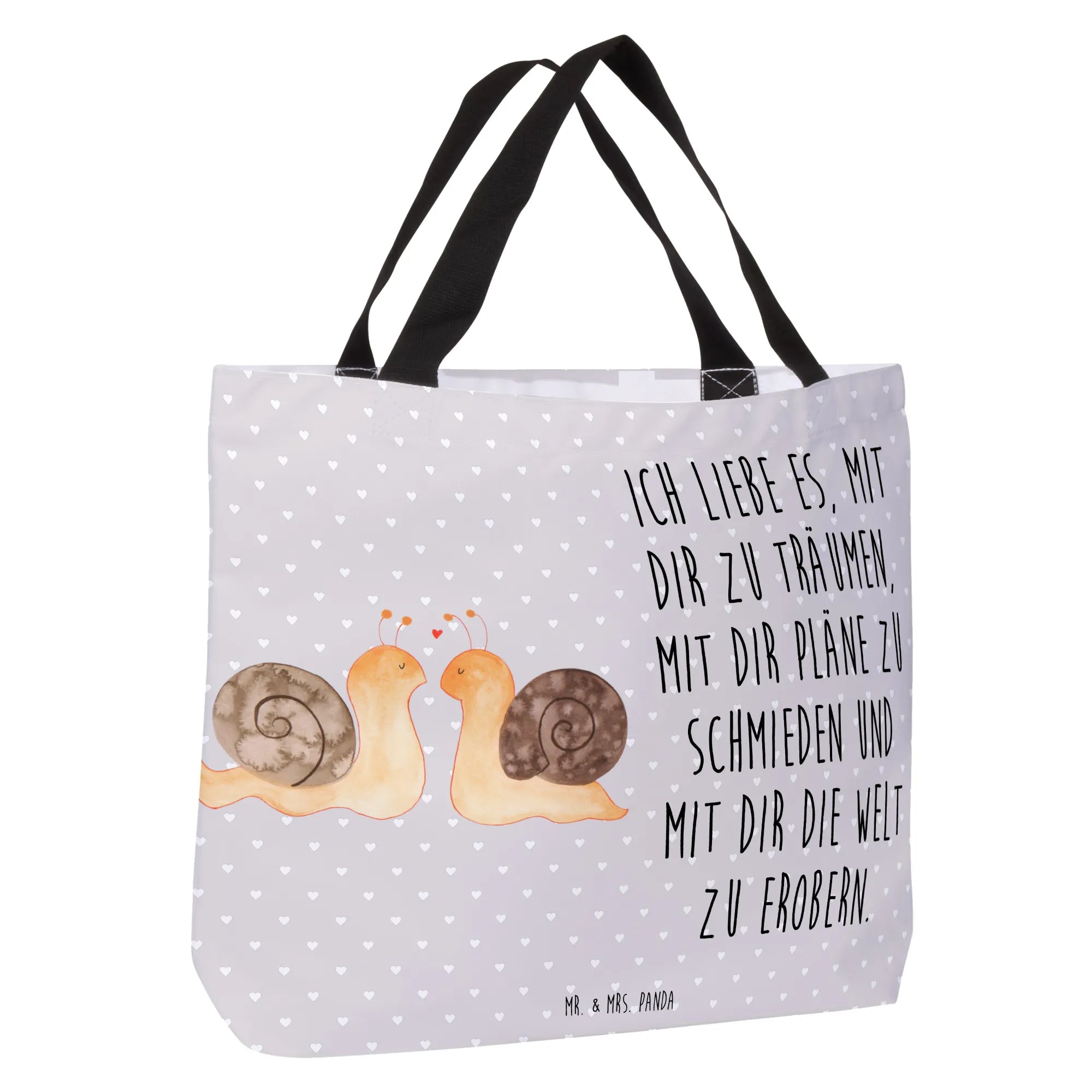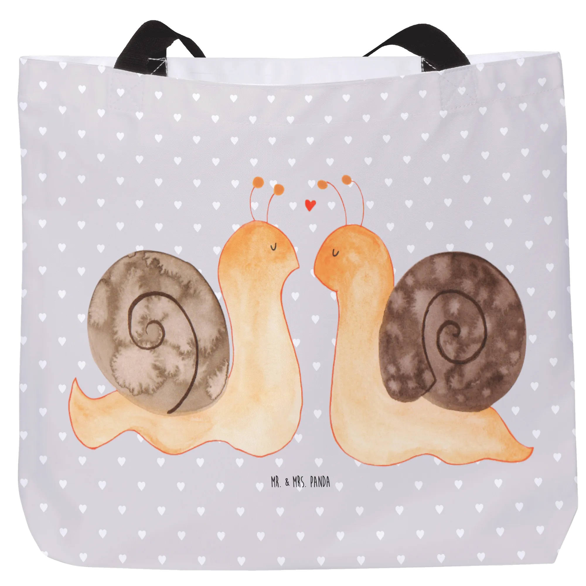 Zauberhafter Shopper "Schnecken Liebe" – ein kleiner Liebesbeweis für jeden Tag! 🌸 Dieser liebevoll gestaltete Shopper aus der Liebe-Kollektion von Mr. & Mrs. Panda zeigt ein süßes Schneckenpärchen, zwei rote Herzen über den Antennen und ein harmonisches, pastellgraues Design. Er kombiniert romantisches Motiv mit praktischer Alltagstauglichkeit.