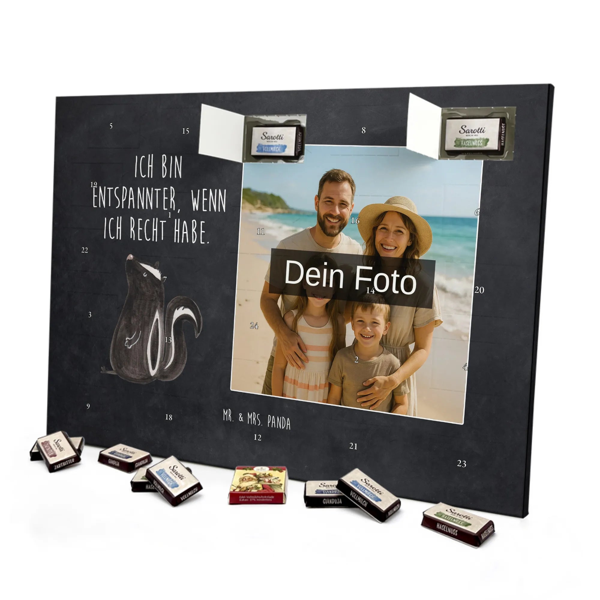 🐼 PERSONALISIERTER KALENDER: Dein Foto-Adventskalender mit 24 Schokoladentäfelchen und Mr. & Mrs. Panda Motiven.
