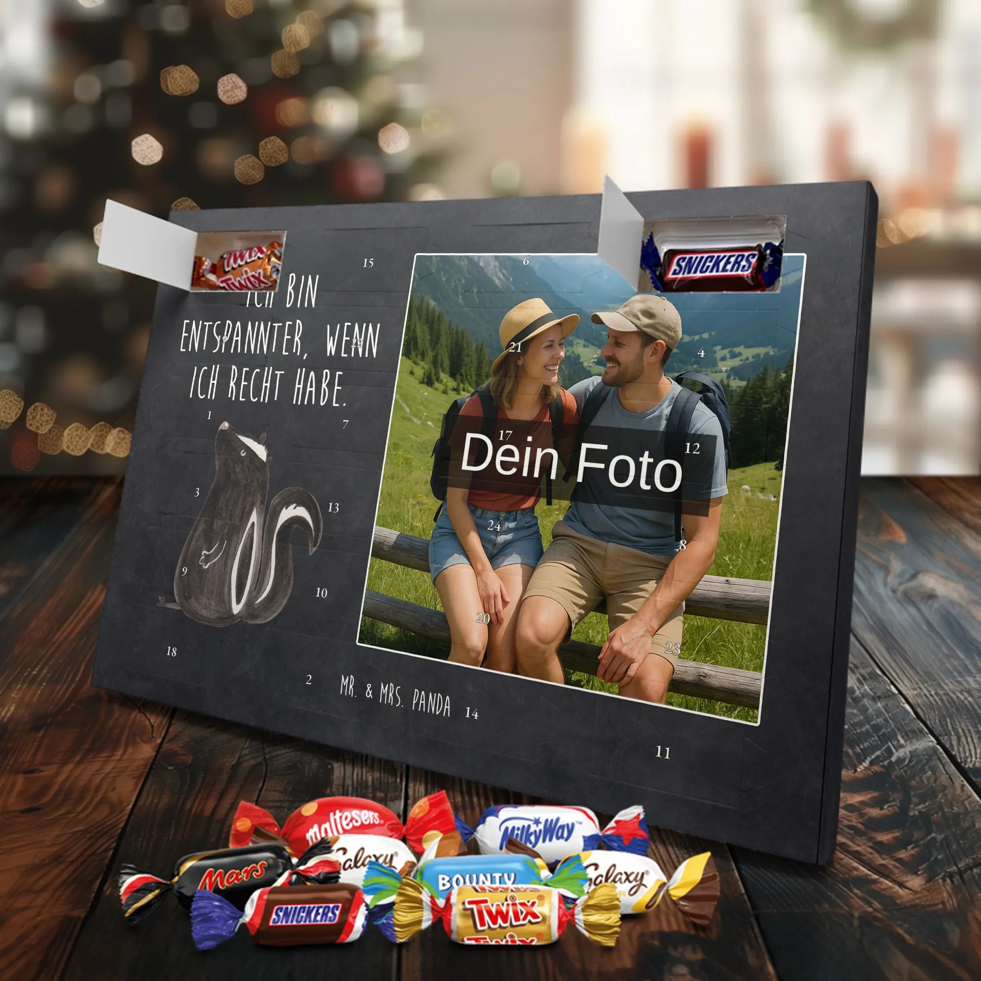 🐼 Personalisierter Schoko Foto Adventskalender mit deinem Foto, Mr. & Mrs. Panda Sprüchen und kinder® Schokolade.