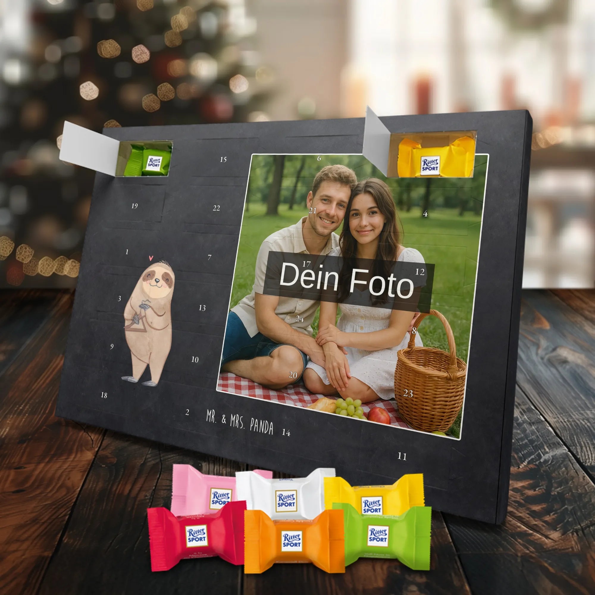 🐼 Personalisierter Schoko Foto Adventskalender mit deinem Foto, Mr. & Mrs. Panda Sprüchen und kinder® Schokolade.