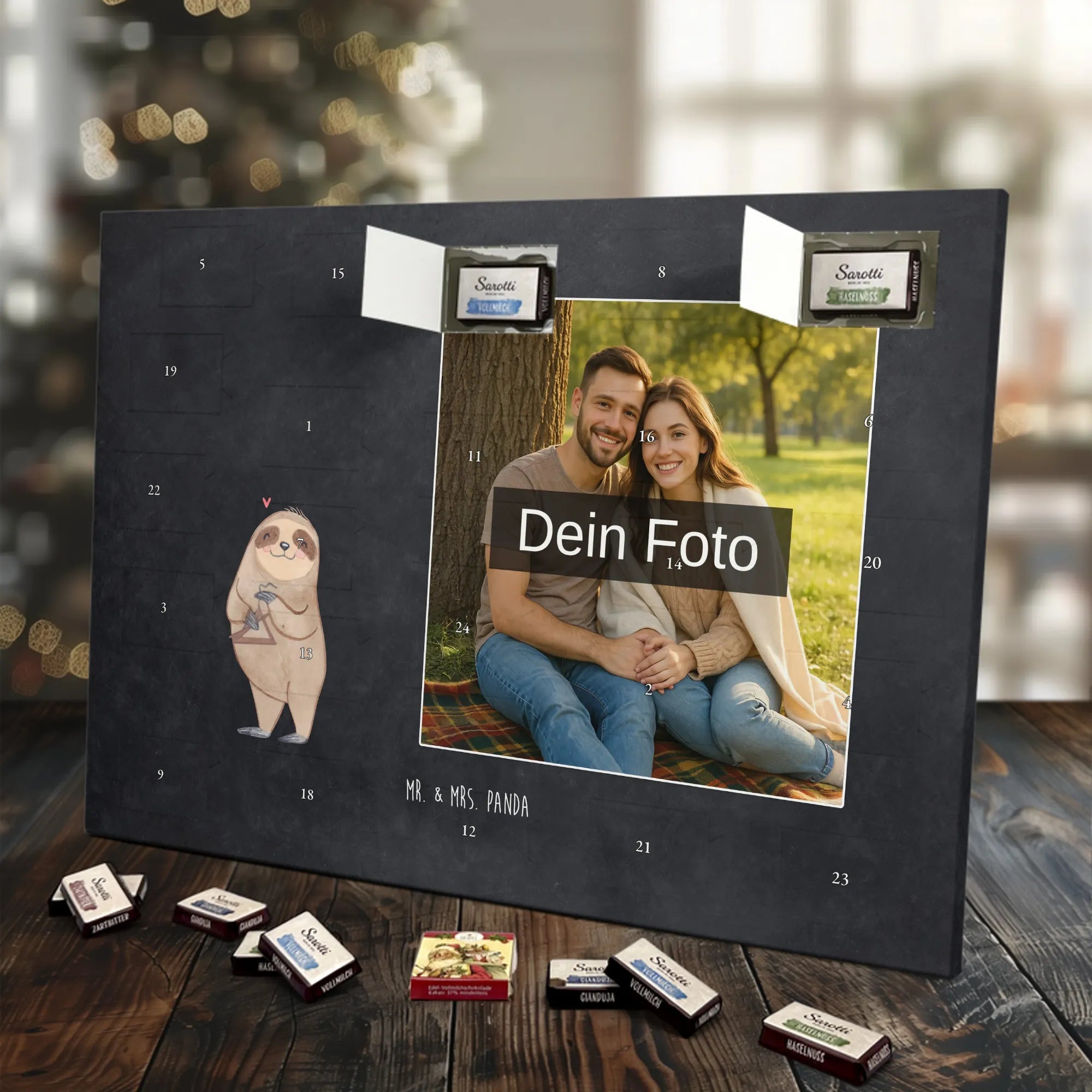 🐼 PERSONALISIERTER KALENDER: Dein Foto-Adventskalender mit 24 Schokoladentäfelchen und Mr. & Mrs. Panda Motiven.