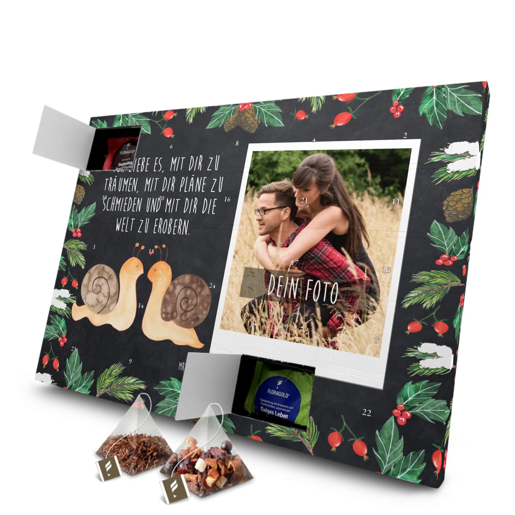 Der personalisierte Tee Foto Adventskalender 'Schnecken Liebe' von Mr. & Mrs. Panda ist das perfekte Geschenk für Verliebte und eine wunderbare Art, die Vorfreude auf die schönste Zeit des Jahres zu zelebrieren. Mit einem charmanten Motiv von niedlichen Schnecken, die sich liebevoll gegenüberstehen, symbolisiert er Zuneigung und Verbundenheit.