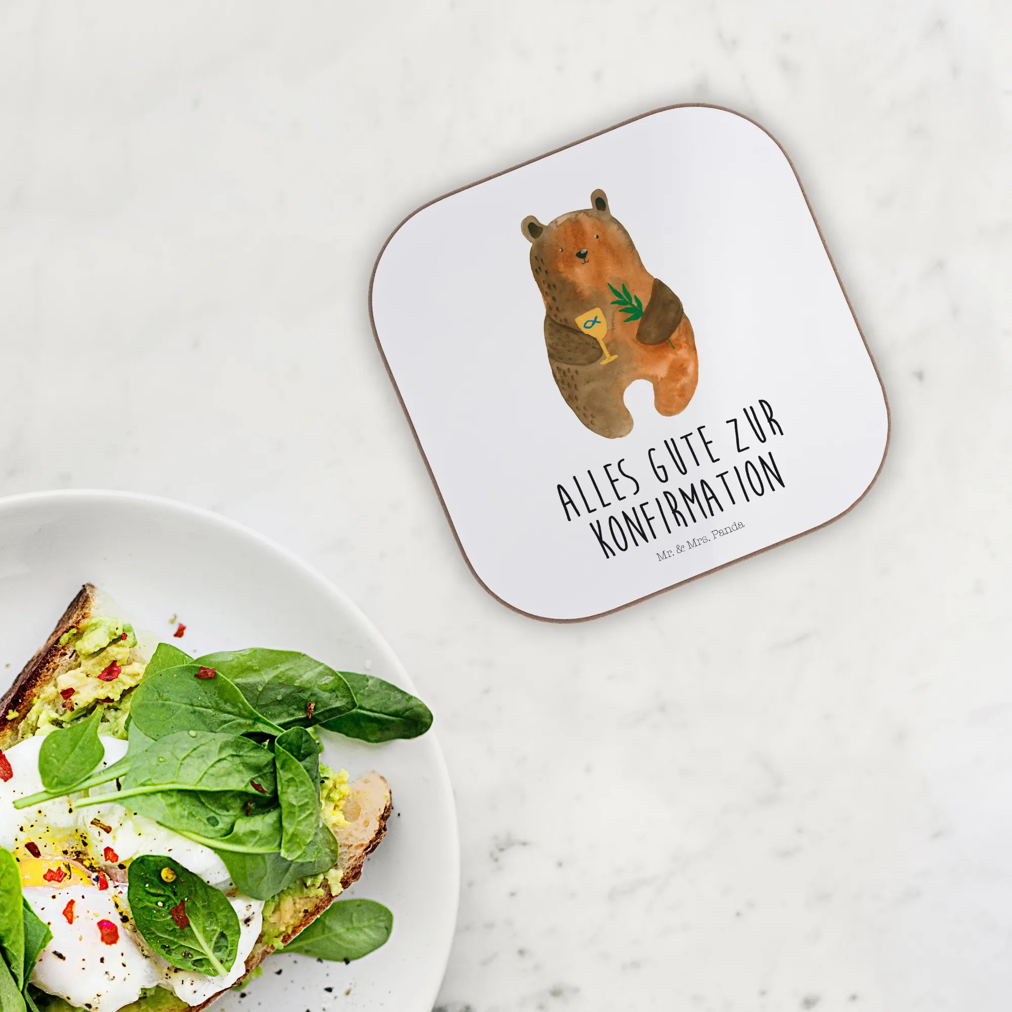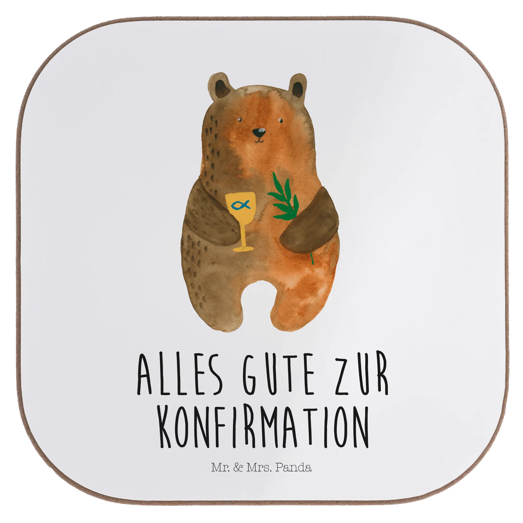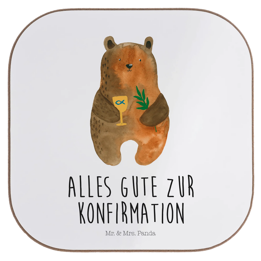 Square coaster bear confirmation glass coasters, gift, party, breakfast, gifts, presents, Coasters, bear, teddy, teddy bear, cuddly toy, service, church, evangelic, confirmation