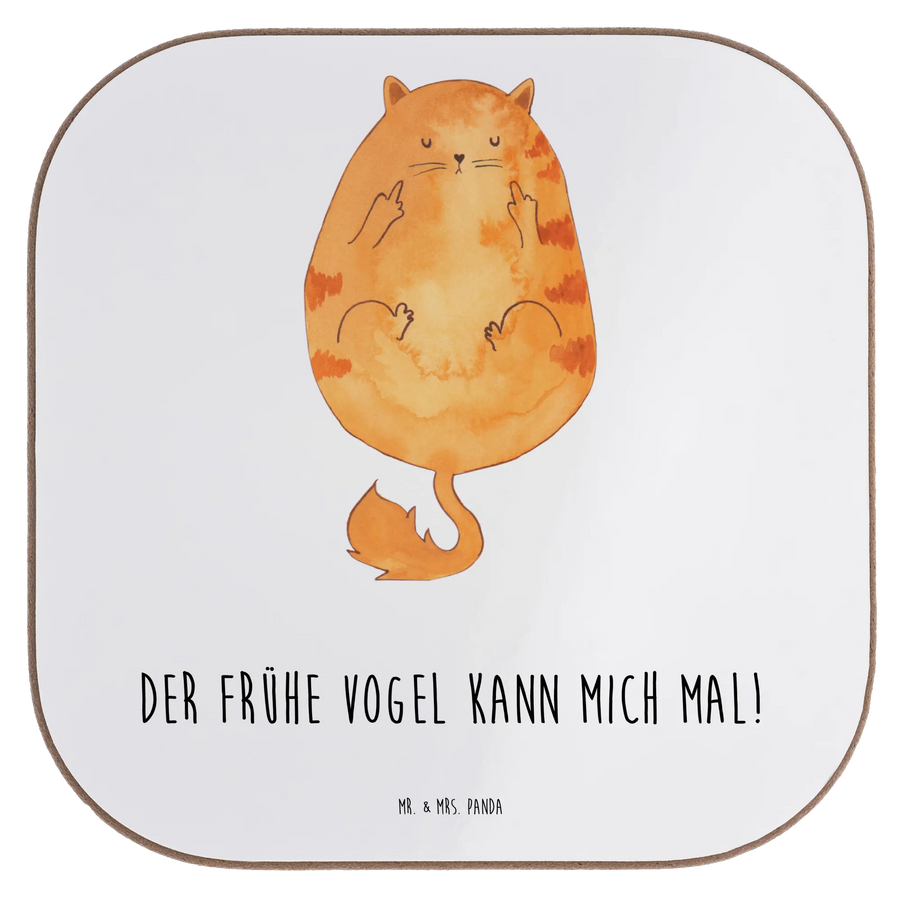 Willkommen in der zauberhaften Welt von Mr. & Mrs. Panda! Wenn du auf der Suche nach einem Accessoire bist, das nicht nur funktional ist, sondern auch eine ordentliche Portion Charakter in dein Zuhause bringt, dann ist unser quadratischer Untersetzer mit dem Motiv Katze Frühaufsteher genau das Richtige für dich. 🐾
