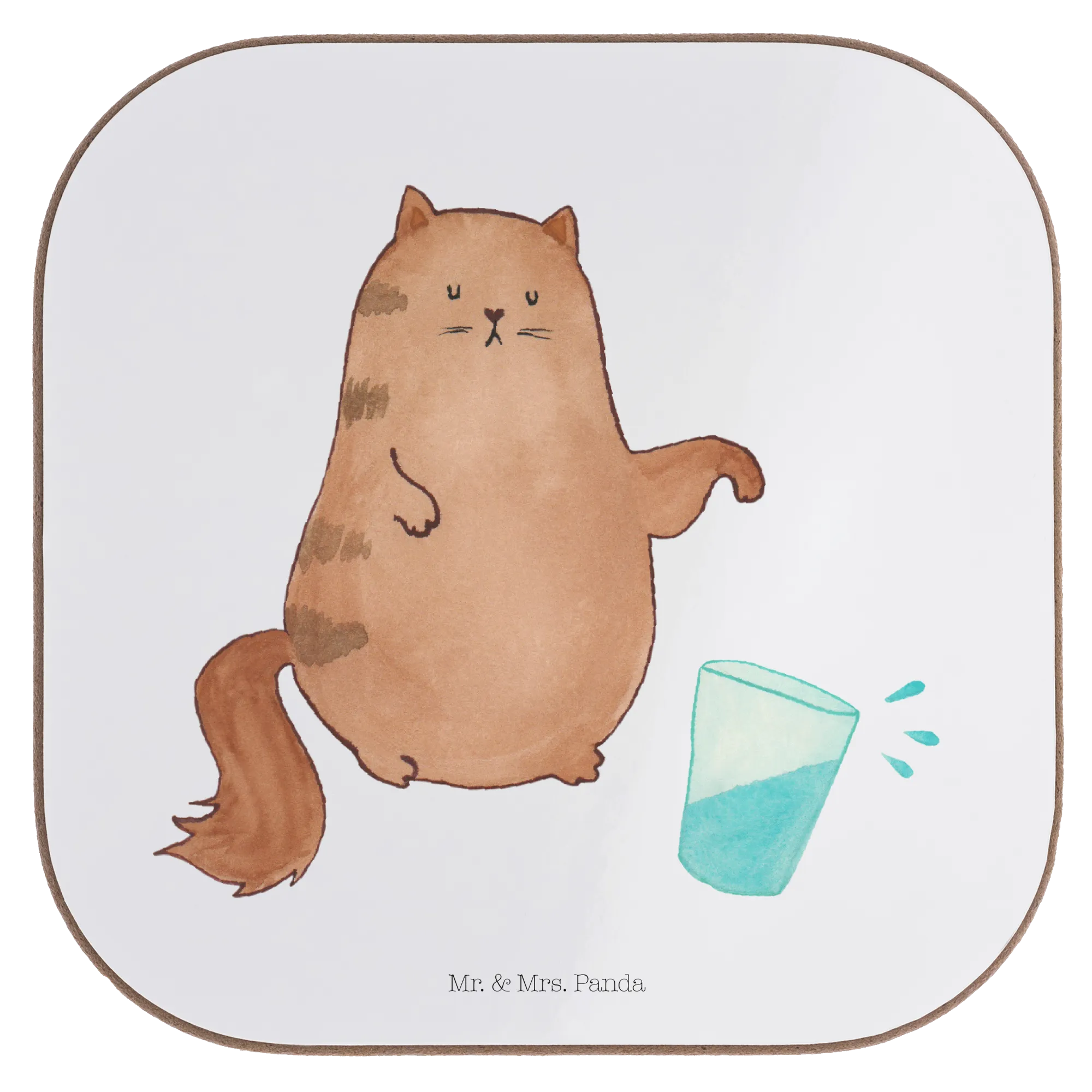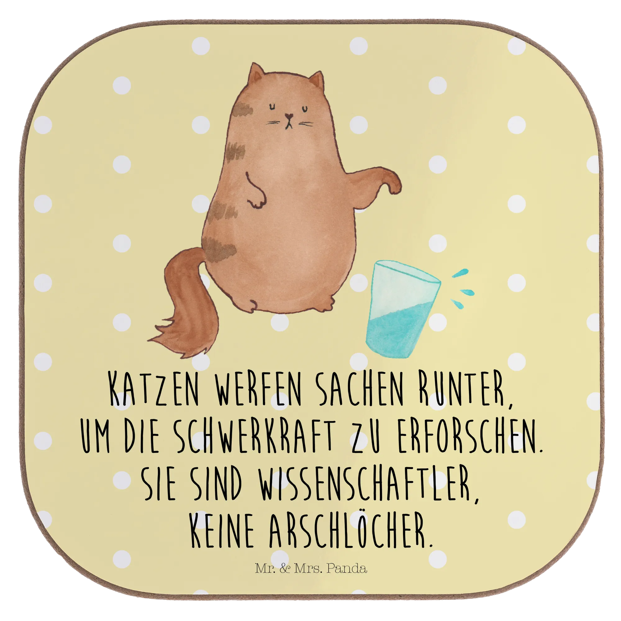 Square coaster Cat water glass - with a saying - Gelb Pastell