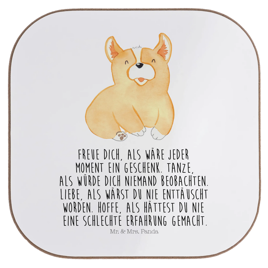 Square coaster Corgi - with saying