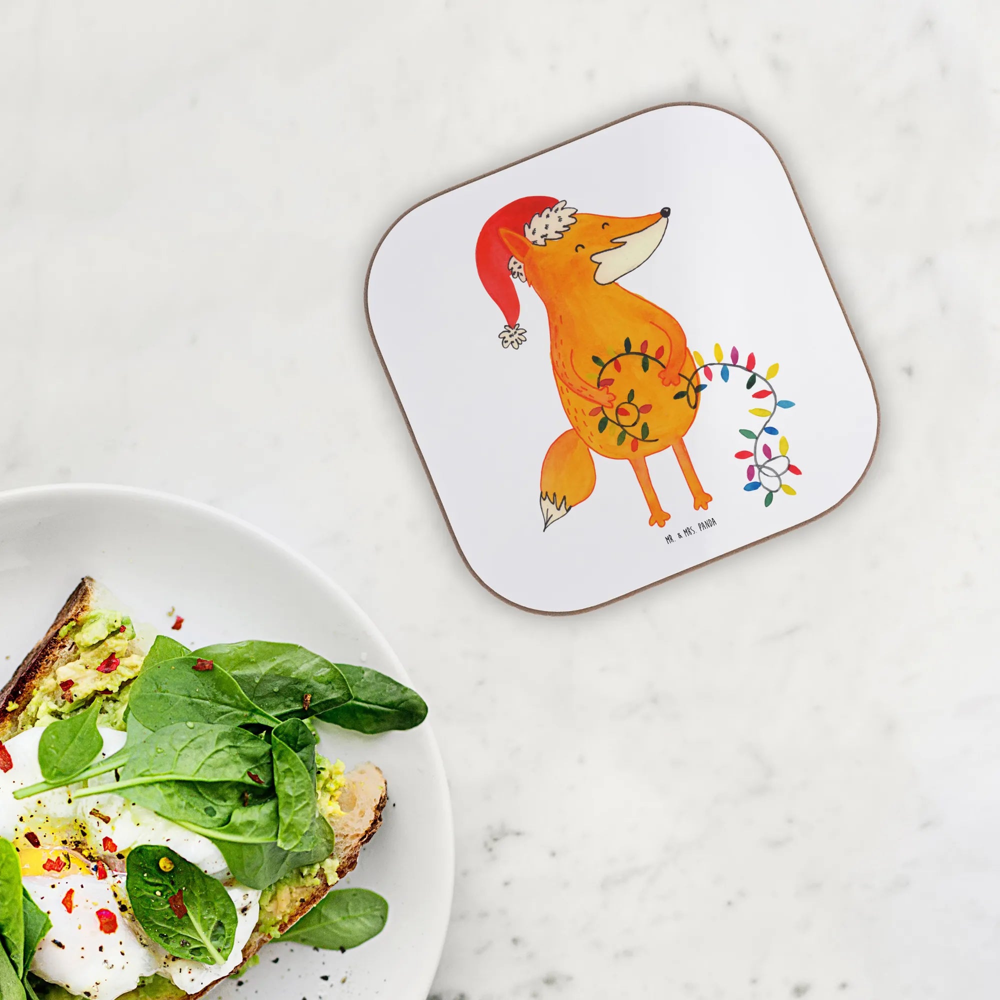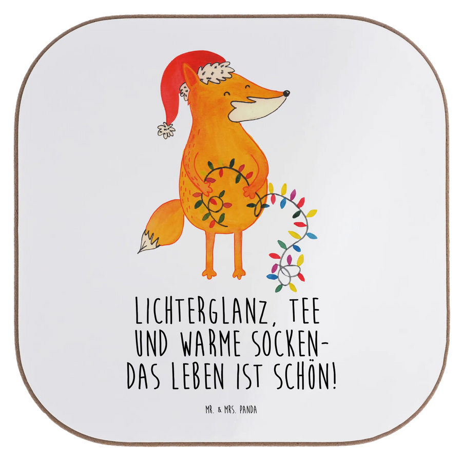 Square coaster Fox Christmas - with saying - White