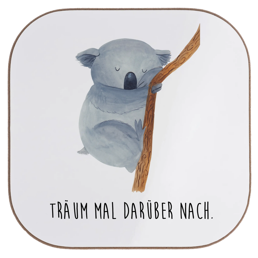 Square coaster koala - with saying - White