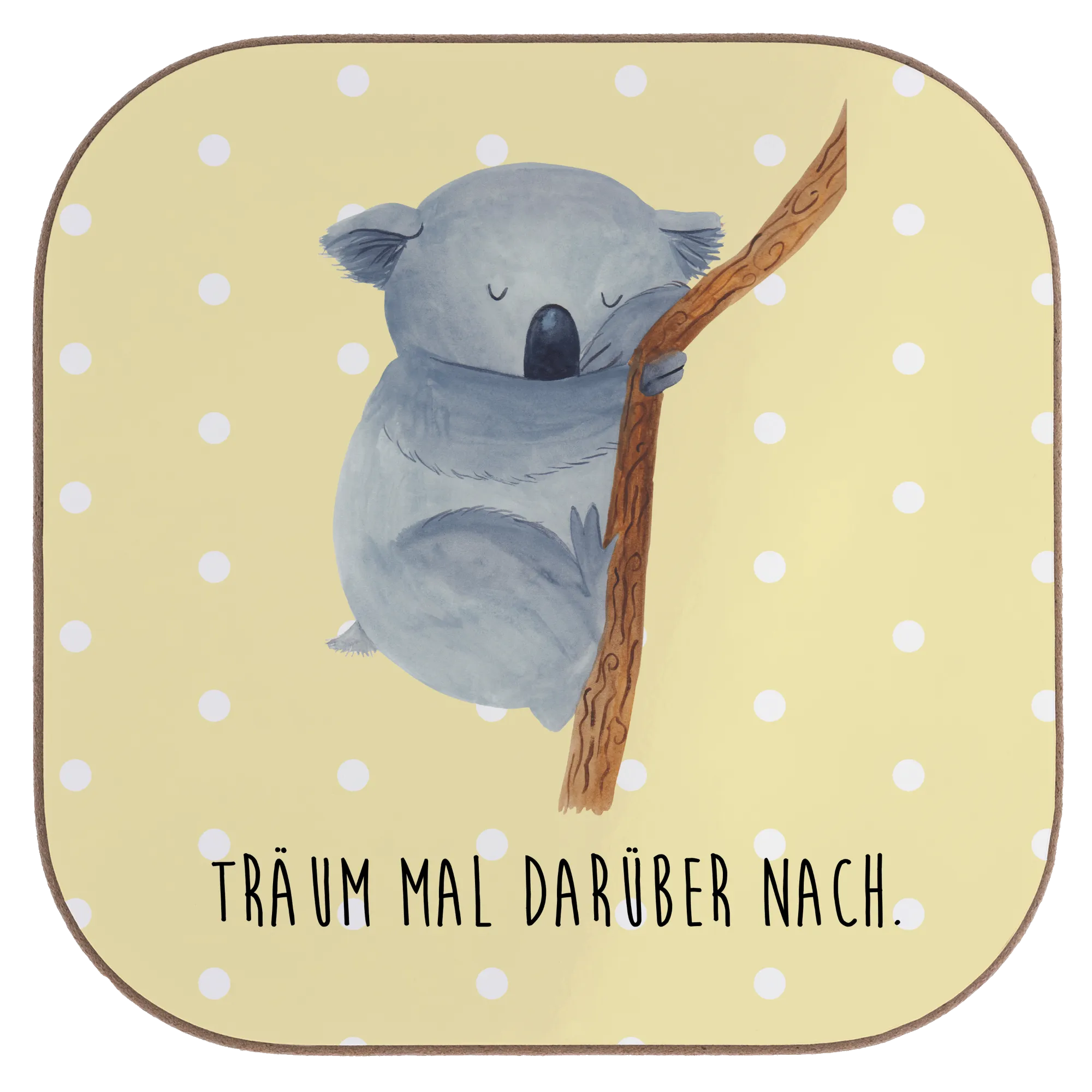 The heartwarming design showcases a sleepy koala, dreaming peacefully while clinging to a branch. It adds playful charm to your living room or dining table and is sure to bring a smile to anyone who sees it. Whether for a cozy breakfast setup or a lively party, this square coaster adds a touch of cuteness that enhances the atmosphere. It’s perfect for all occasions, from birthdays to housewarming gifts, and serves as a thoughtful present for friends and family.