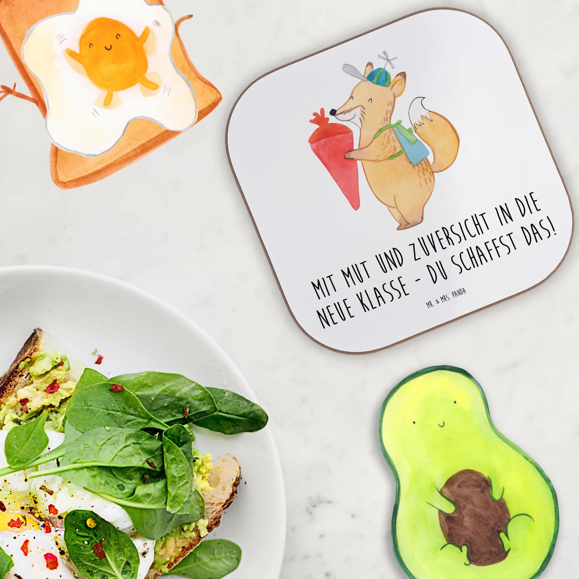 Square coaster Mit Mut und Zuversicht in die neue Klasse - du schaffst – Mr. & Mrs. Panda
