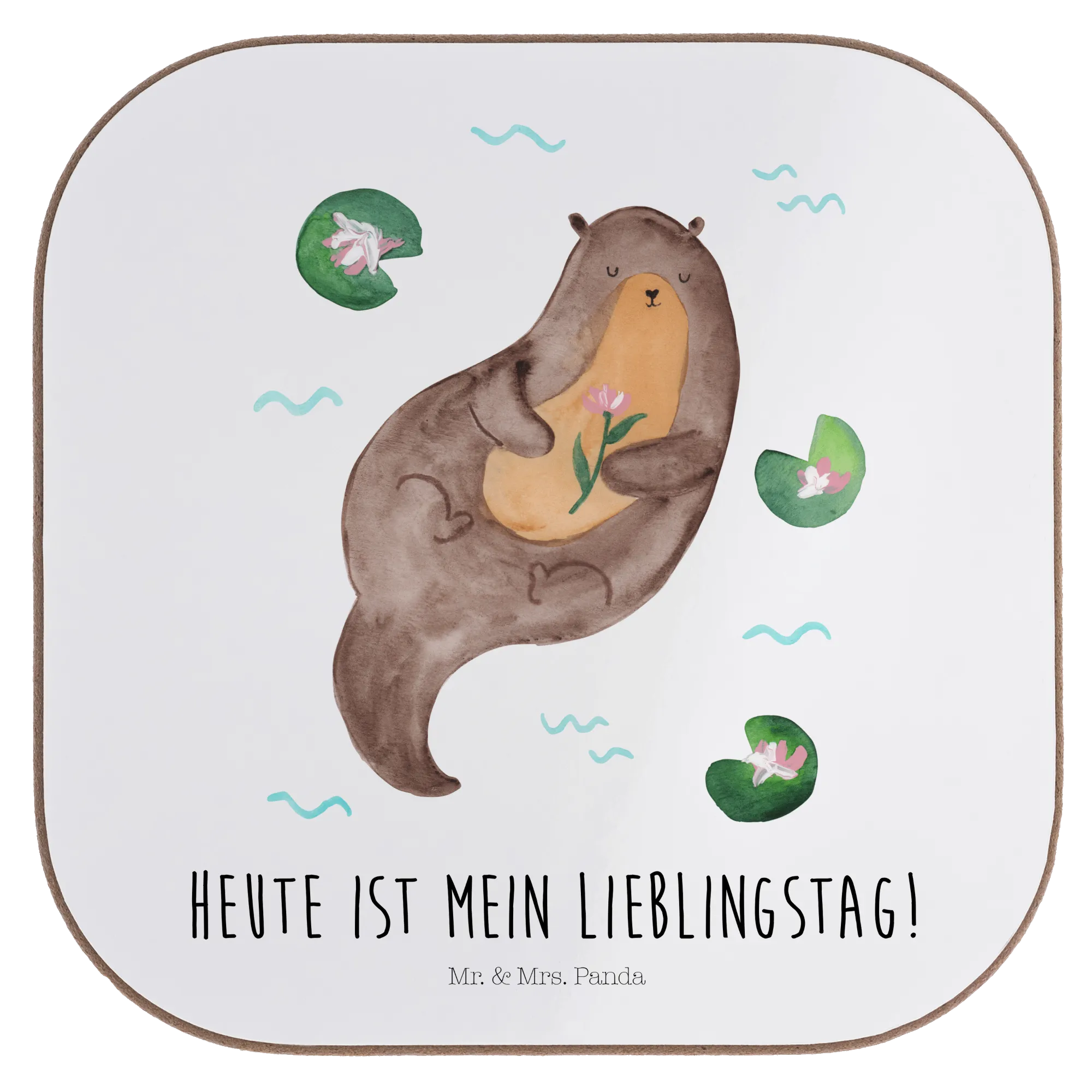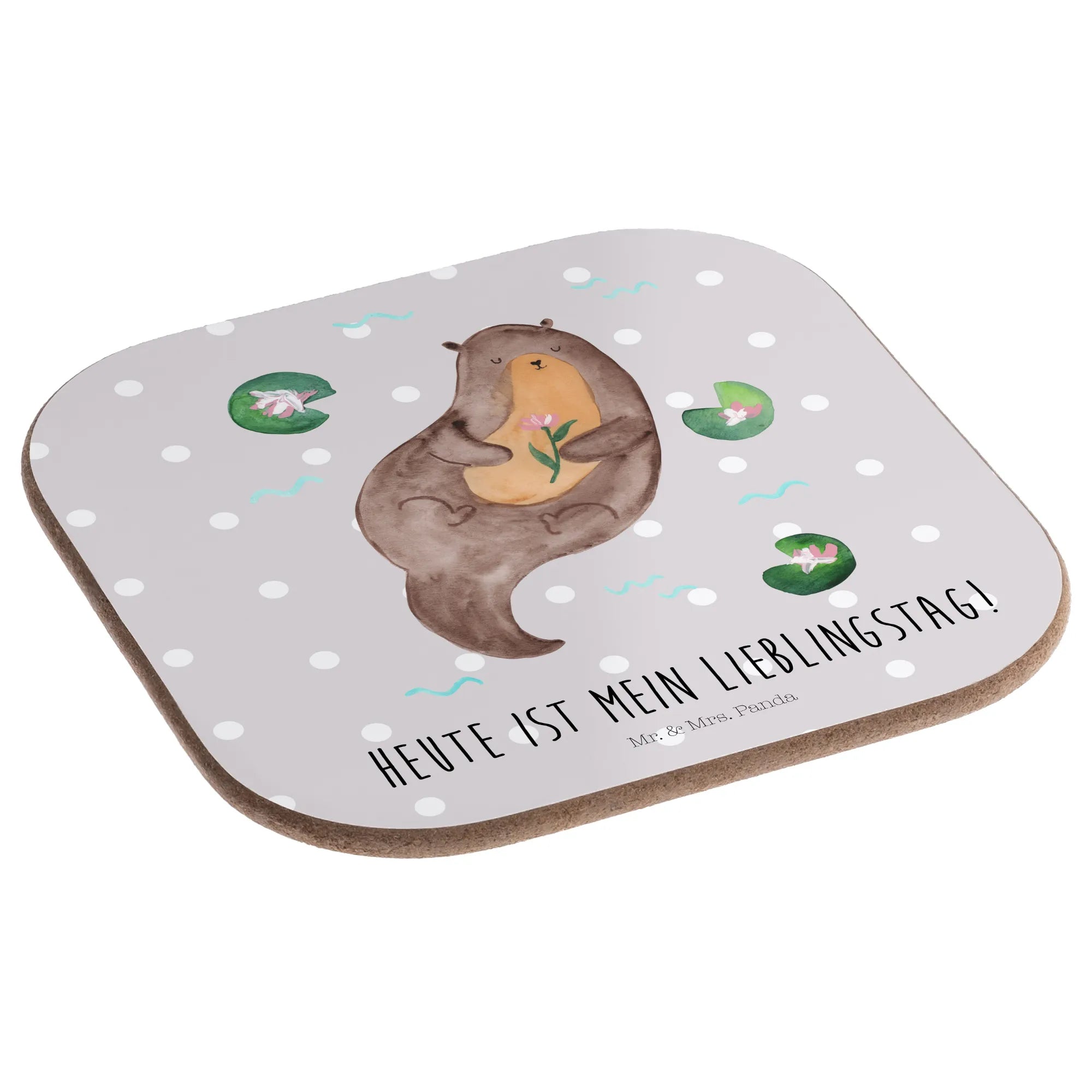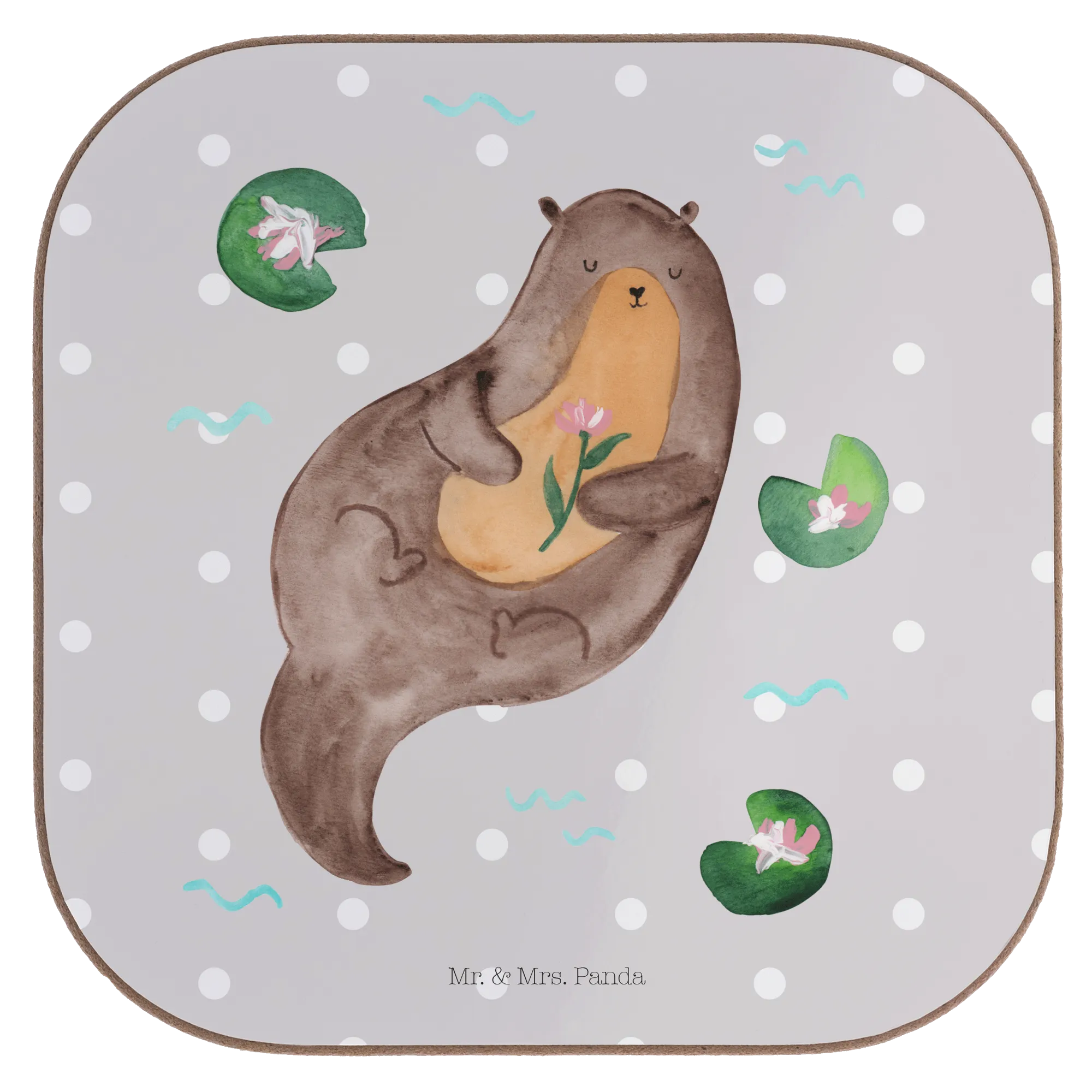 Square coaster otter Water Lily - with a saying - Grey Pastel