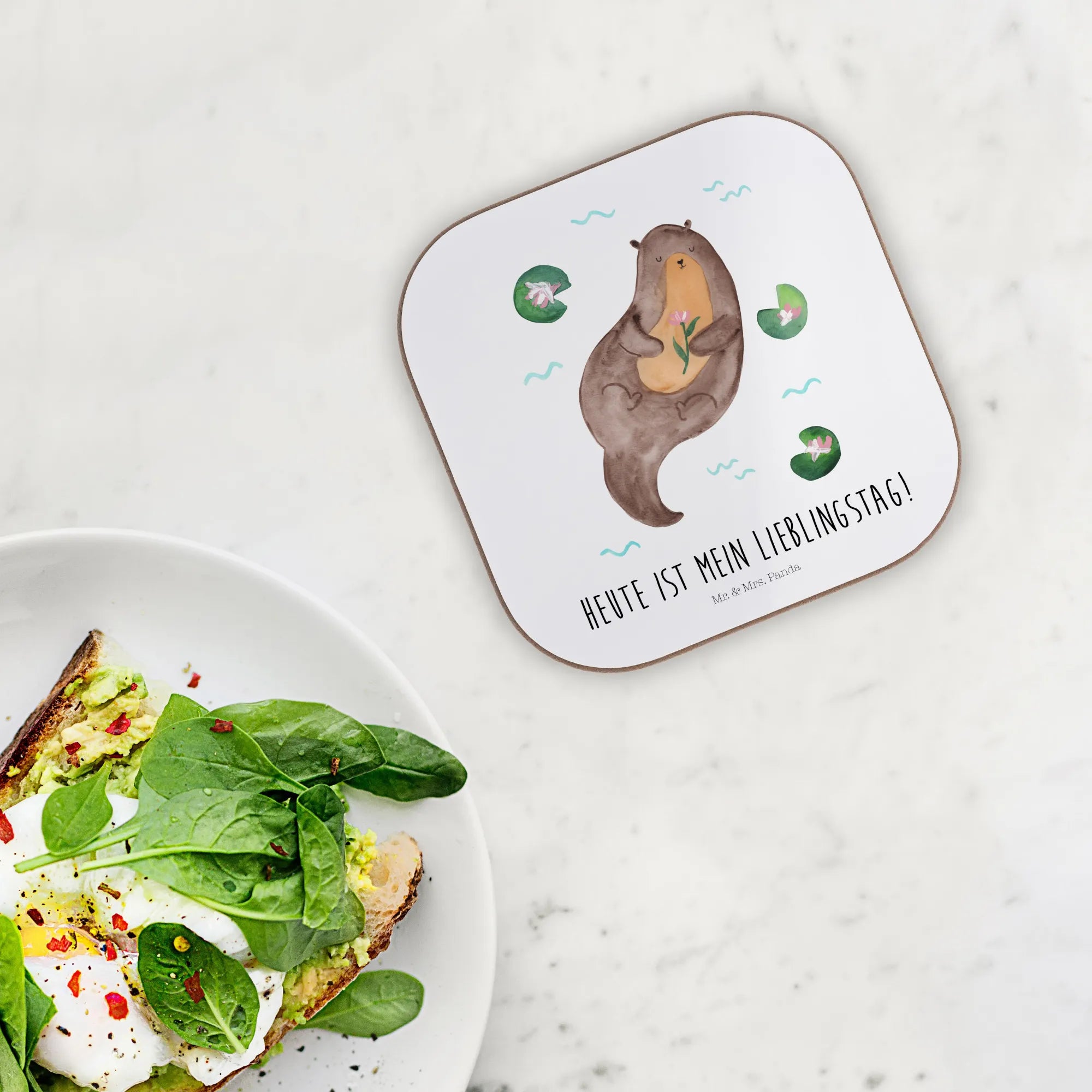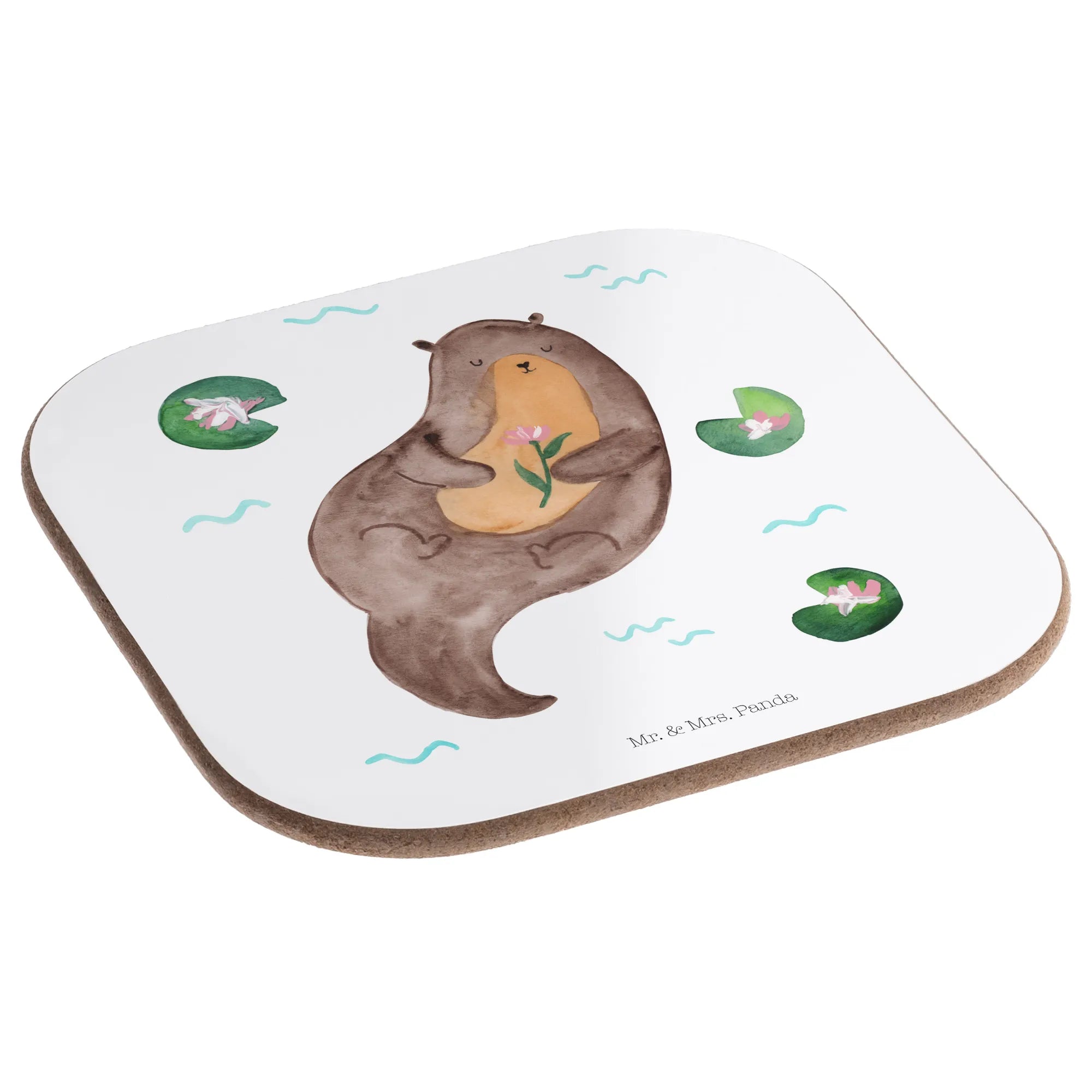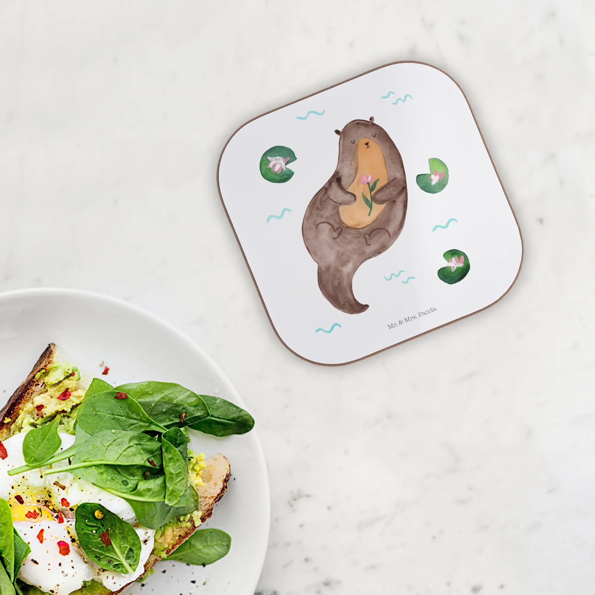 Square coaster otter Water Lily - with a saying - Grey Pastel