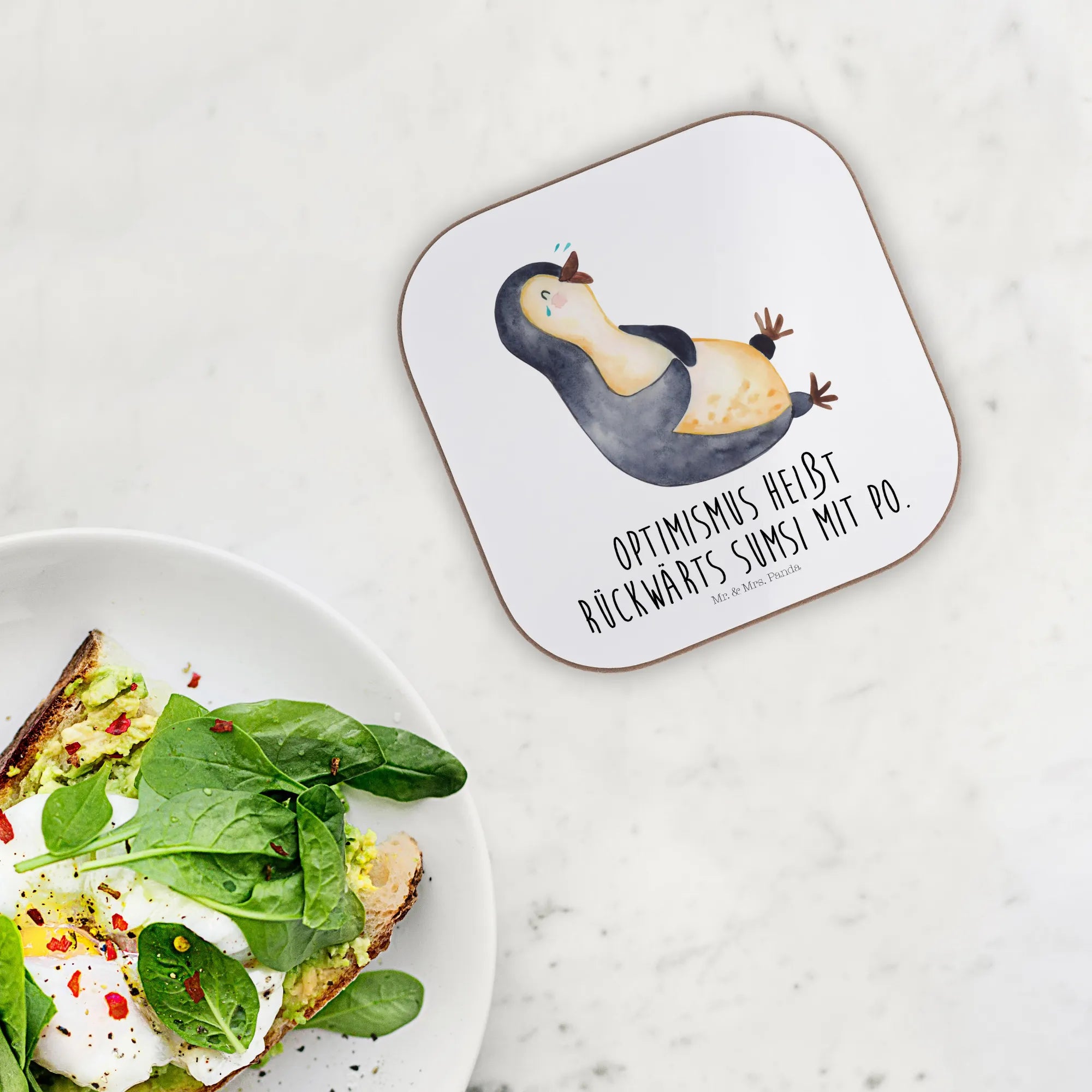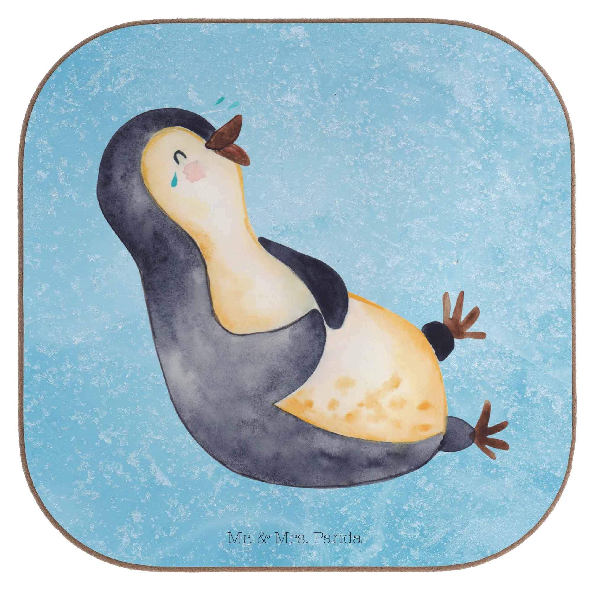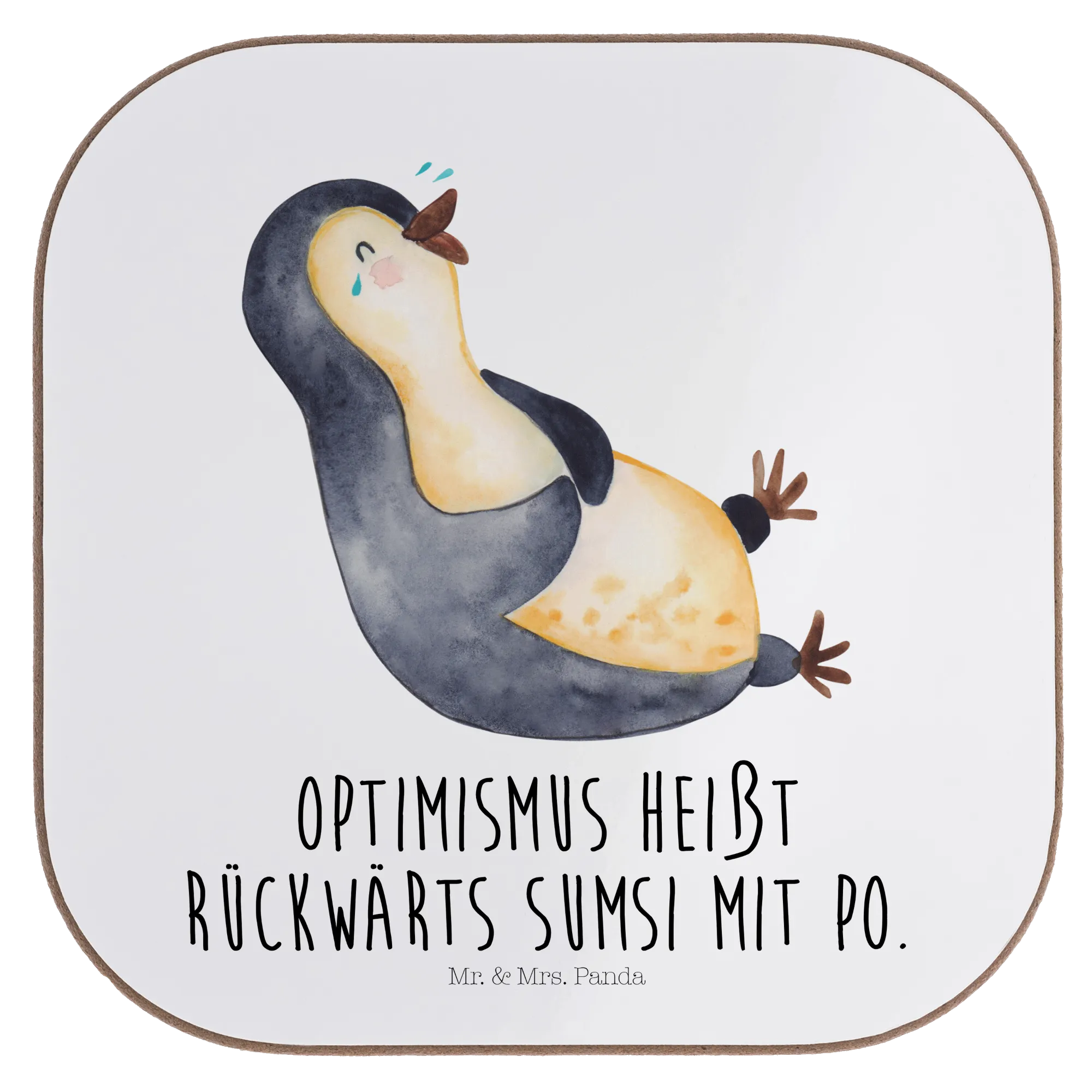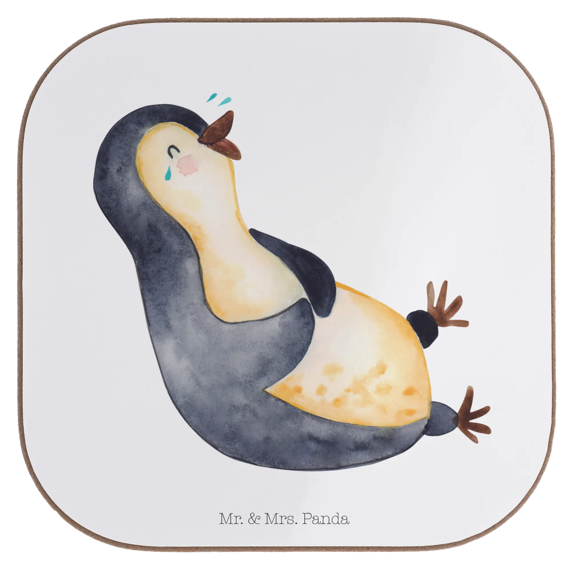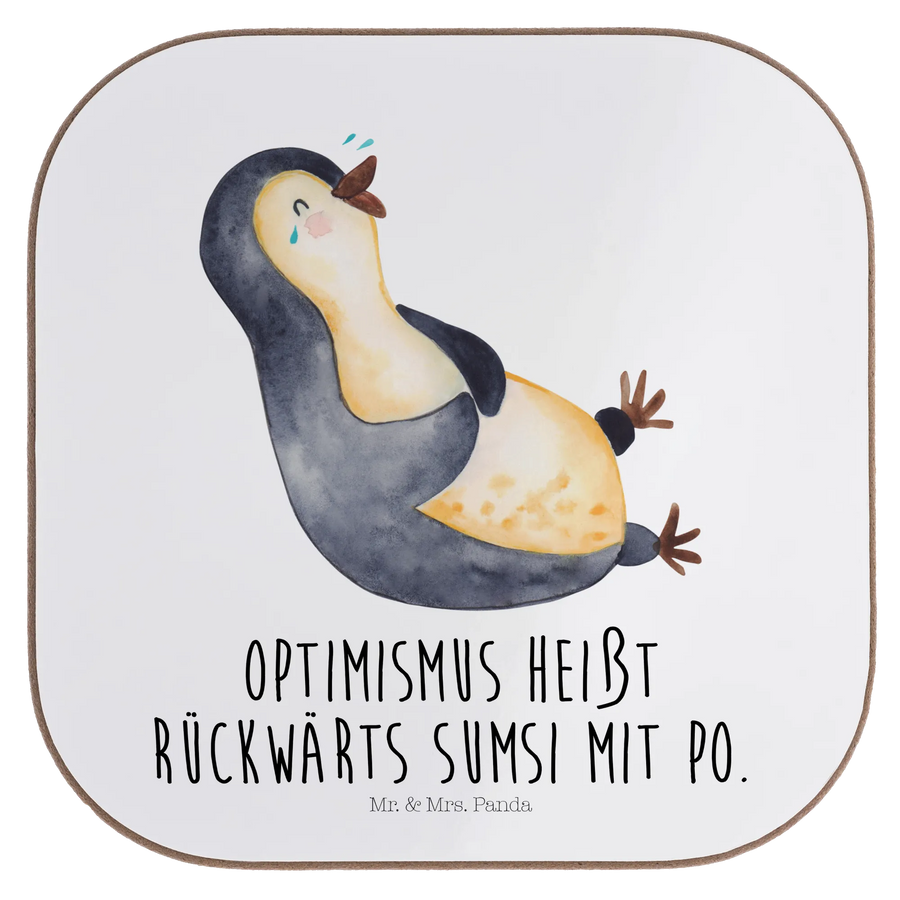 Square coaster Penguin Laugh - with saying - White