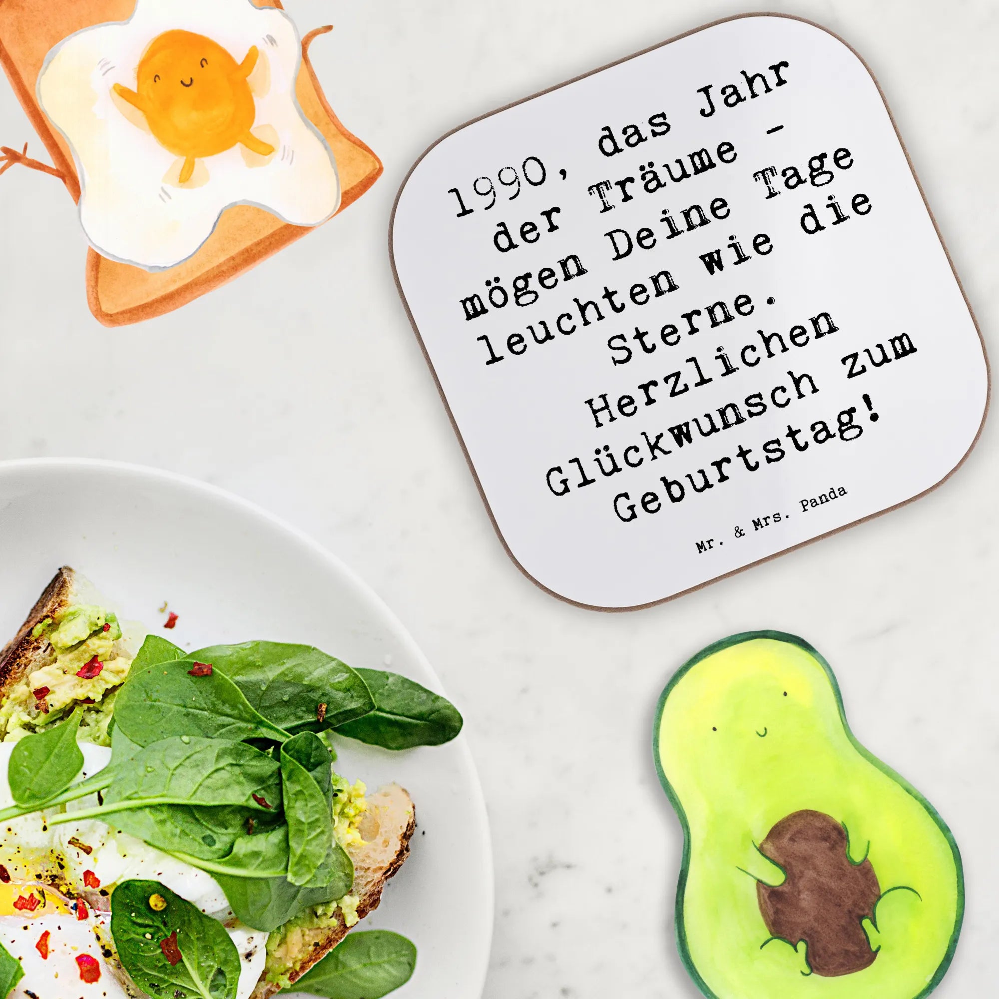Square coaster Saying 1990, das Jahr der Träume - mögen Deine Tage leuchten wie die Sterne. Herzlichen Glückwunsch zum Geburtstag! - Sea Breeze