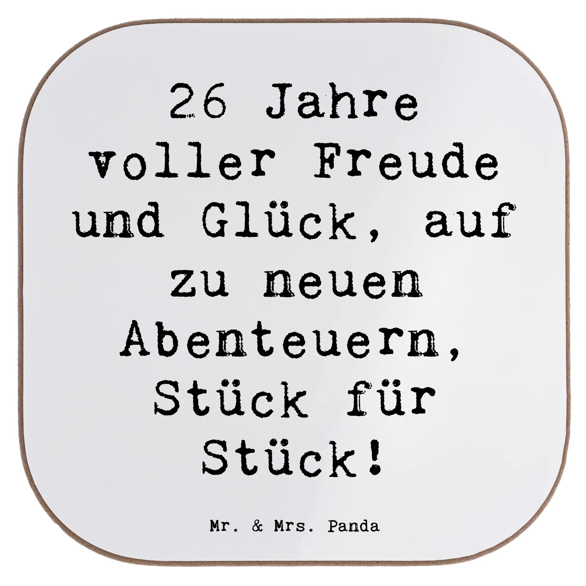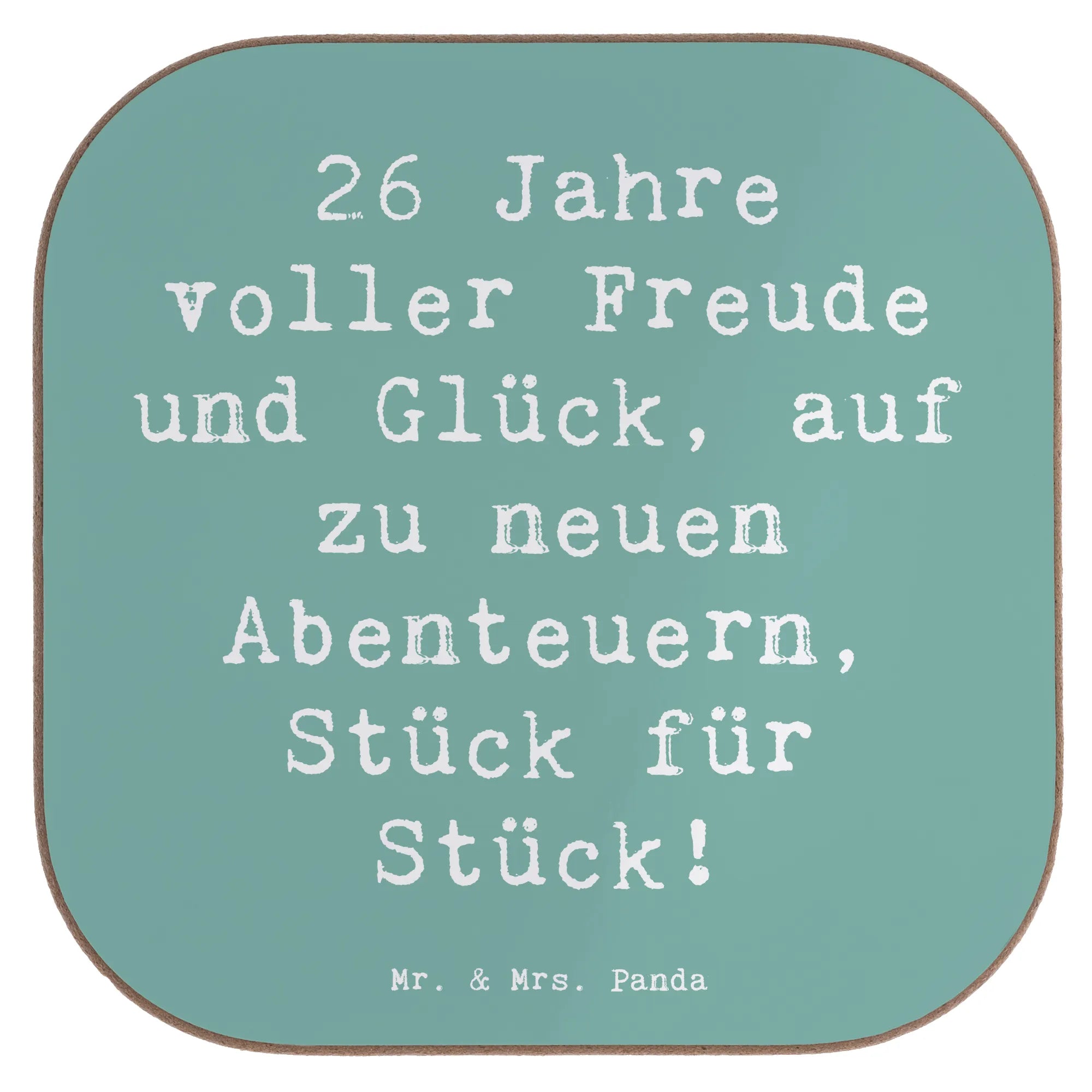 Square coaster Saying 26 Jahre voller Freude und Glück, auf zu neuen Abenteuern, Stück für Stück! - Sea Breeze