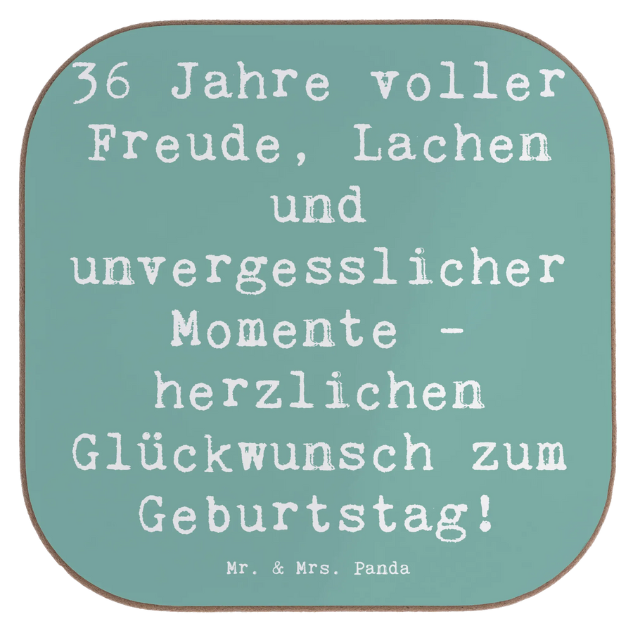 Square coaster Saying 36 Jahre voller Freude, Lachen und unvergesslicher Momente - herzlichen Glückwunsch zum Geburtstag! - Sea Breeze