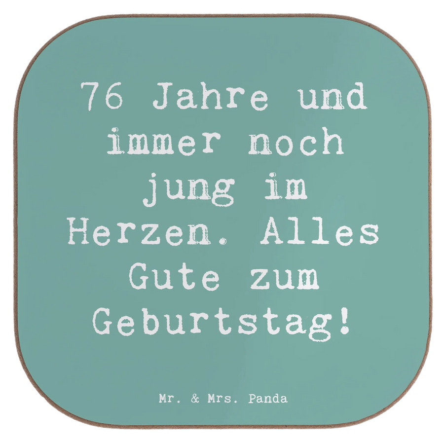 Square coaster Saying 76 Jahre und immer noch jung im Herzen. Alles Gute zum Geburtstag! - Sea Breeze