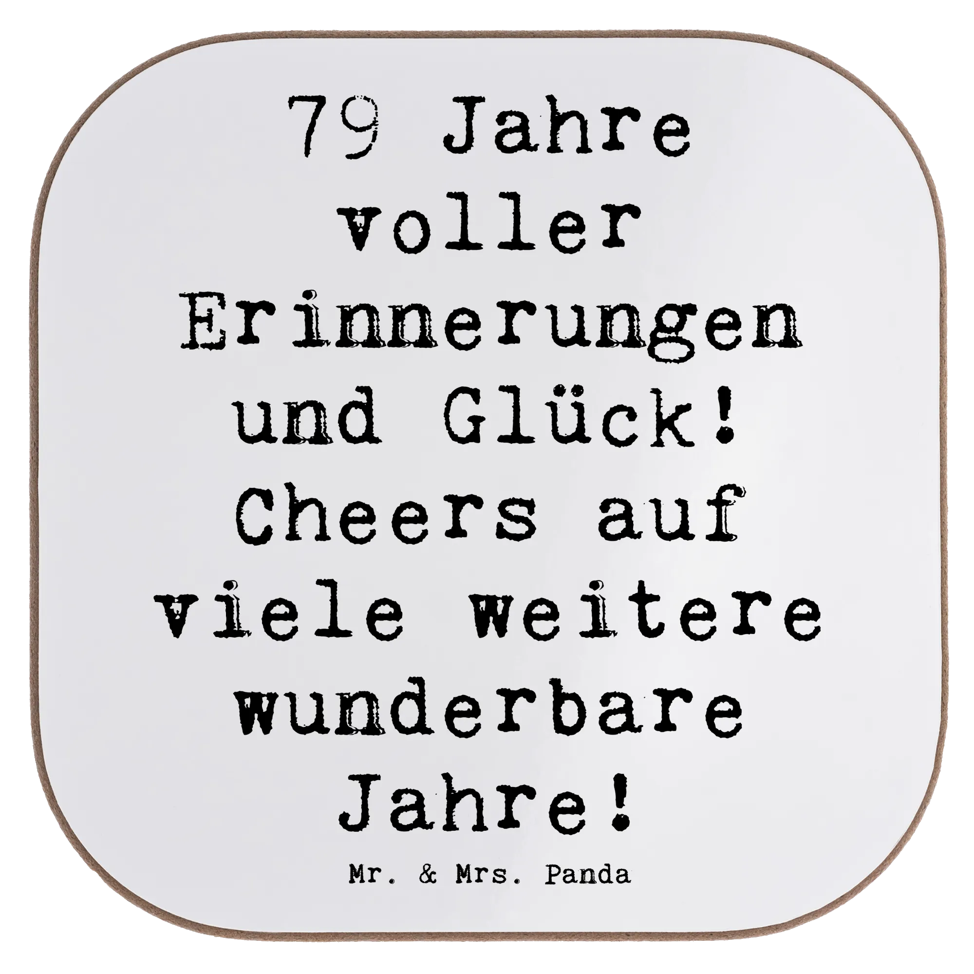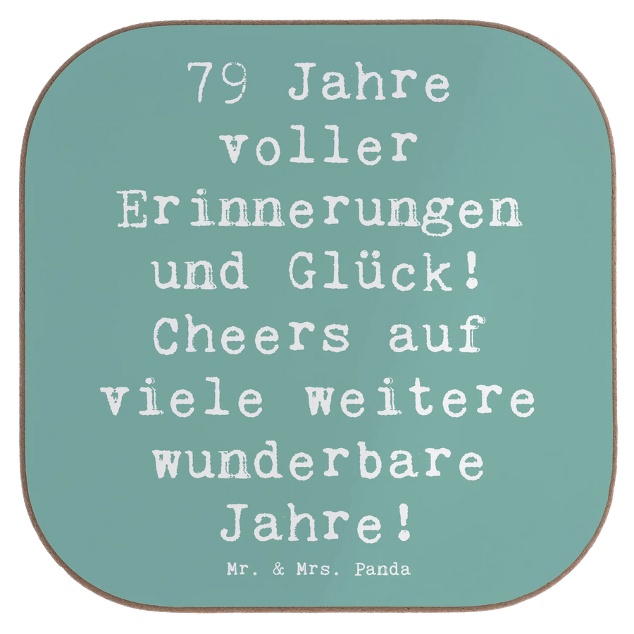 Suchst du ein liebevolles Geschenk zum 79. Geburtstag? Unser quadratischer Untersetzer von Mr. & Mrs. Panda mit dem herzlichen Spruch „79 Jahre voller Erinnerungen und Glück! Cheers auf viele weitere wunderbare Jahre!“ ist die perfekte Kombination aus Stil und Alltagstauglichkeit. Er schützt deinen Tisch vor Abdrücken, Kratzern und extremen Temperaturen und bringt gleichzeitig ein warmes Lächeln auf das Gesicht des Beschenkten.