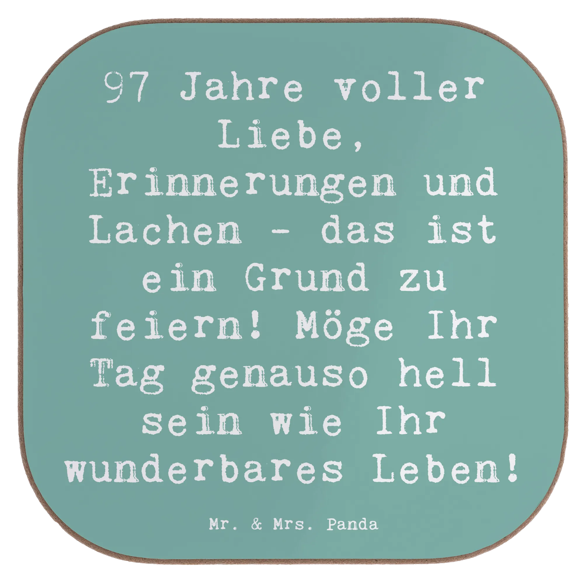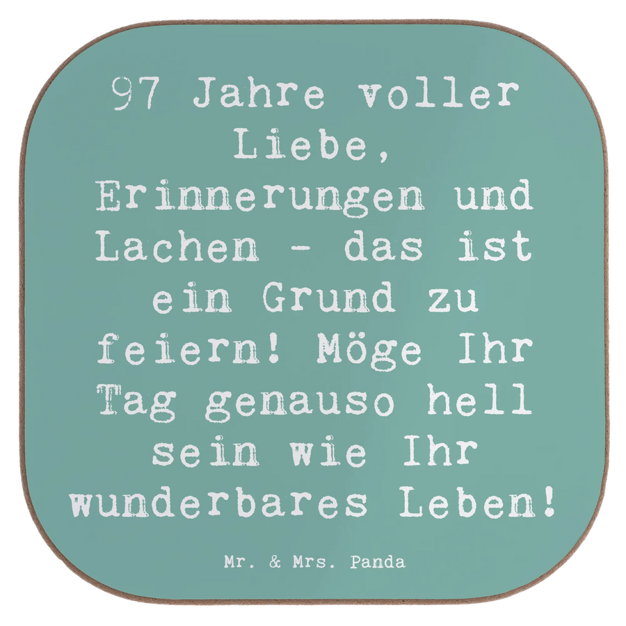Square coaster Saying 97 Jahre voller Liebe, Erinnerungen und Lachen - das ist ein Grund zu feiern! Möge Ihr Tag genauso hell sein wie Ihr wunderbares Leben! - Sea Breeze