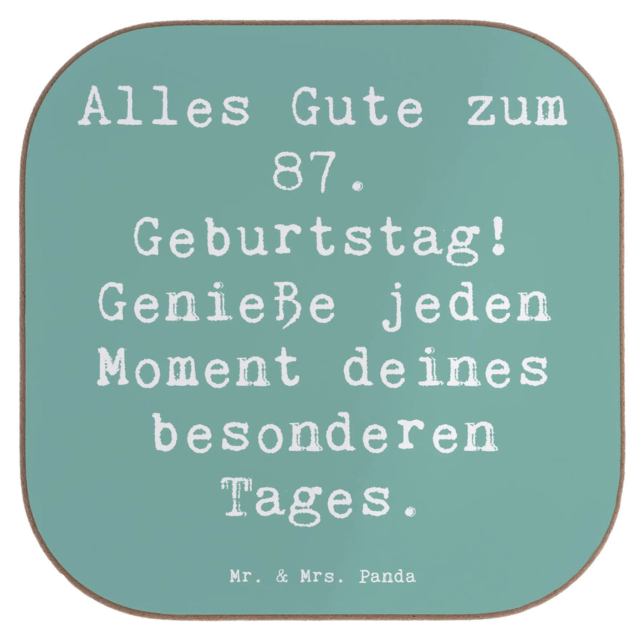 Square coaster Saying Alles Gute zum 87. Geburtstag! Genieße jeden Moment deines besonderen Tages. - Meeresbrise