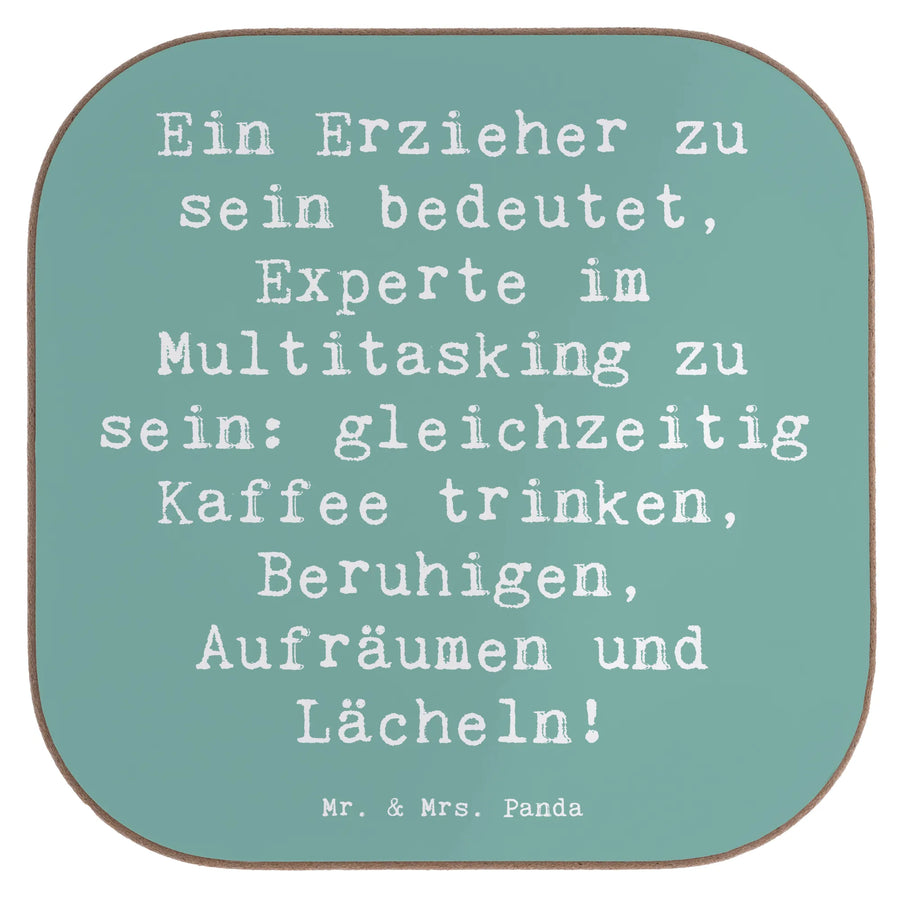 Square coaster Saying Ein Erzieher zu sein bedeutet, Experte im Multitasking zu sein: gleichzeitig Kaffee trinken, Beruhigen, Aufräumen und Lächeln! - Meeresbrise