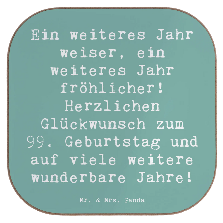 Square coaster Saying Ein weiteres Jahr weiser, ein weiteres Jahr fröhlicher! Herzlichen Glückwunsch zum 99. Geburtstag und auf viele weitere wunderbare Jahre! - Sea Breeze